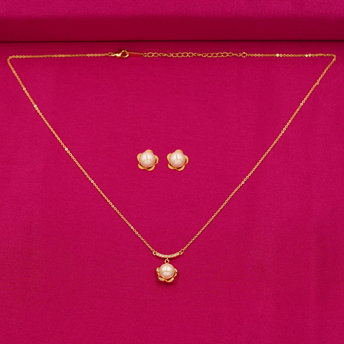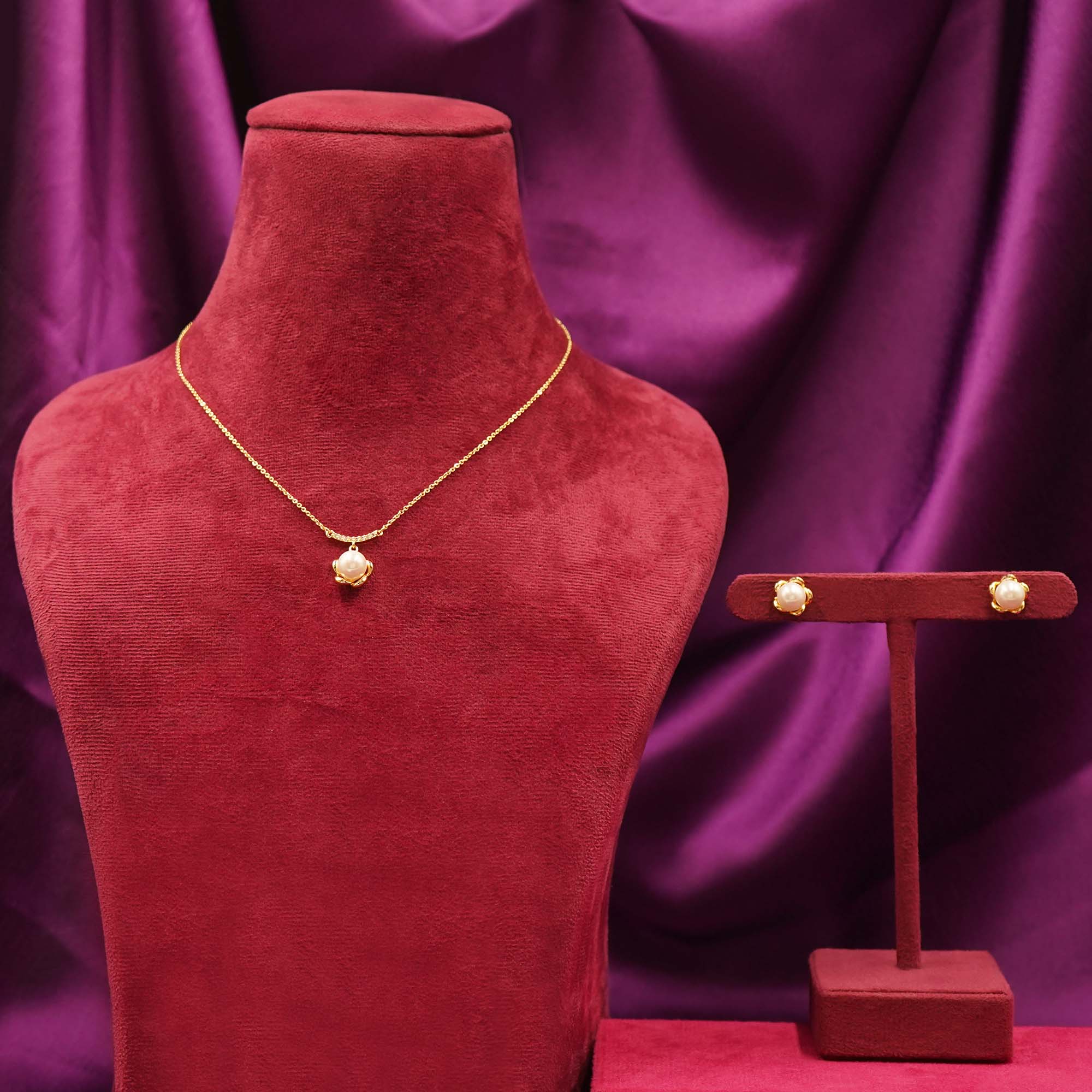 DESCRIPTION - This charming jewelry set features a unique design with a round pearl pendant, delicately encased in a subtle gold-tone setting, complemented by matching pearl stud earrings. perfect for elevating your everyday style or adding a refined touch to a formal ensemble. Though not made of gold or silver, the craftsmanship ensures a high-end aesthetic.
