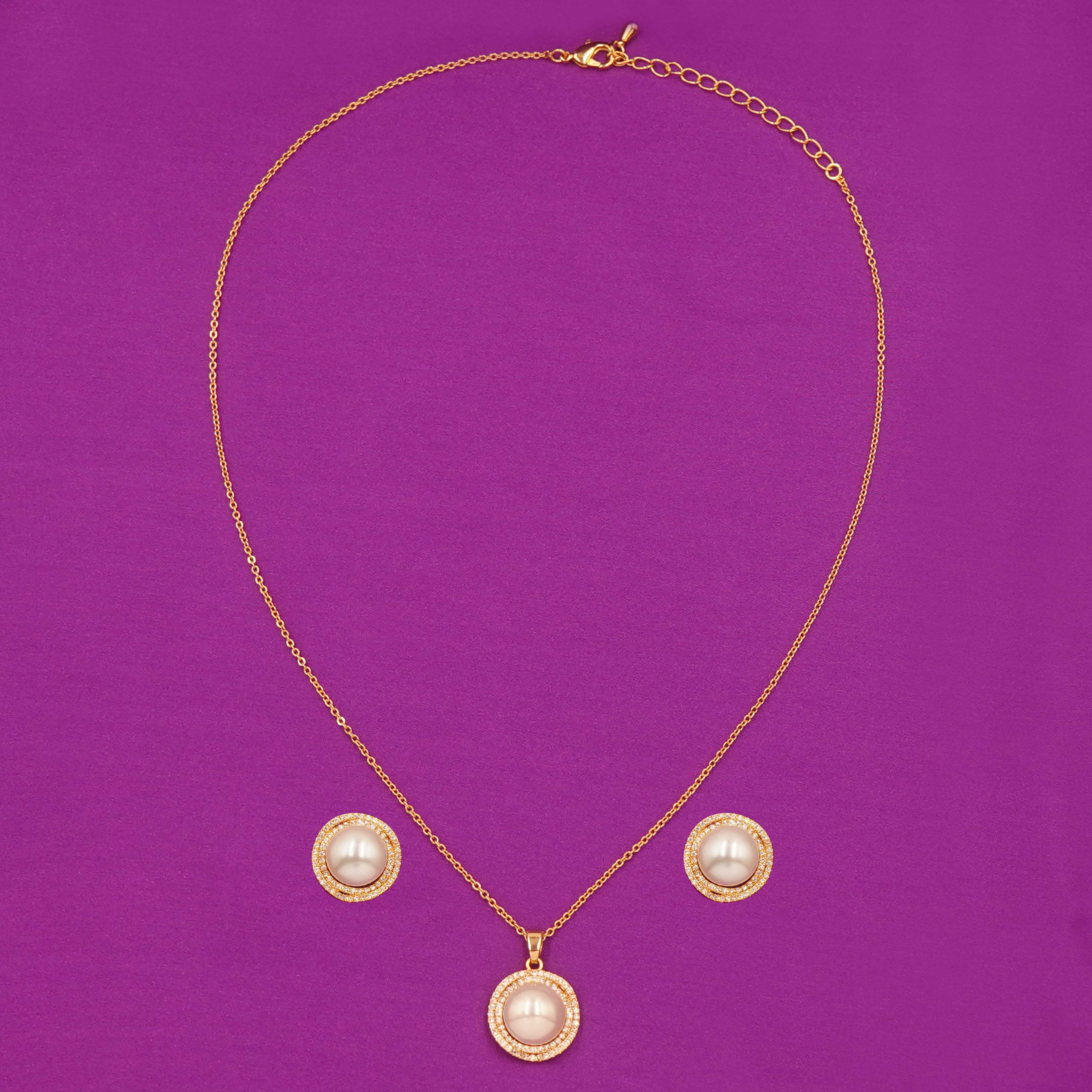 Elegant Pearl Pendant Necklace & Stud Earrings Set