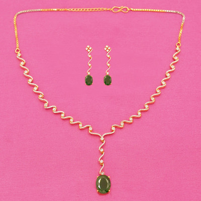 DESCRIPTION - Radiate timeless beauty with this Emerald Wave Grace Necklace Set, featuring an elegant wavy diamond design paired with captivating green stones. The matching earrings complete the look with a perfect balance of sparkle and sophistication.