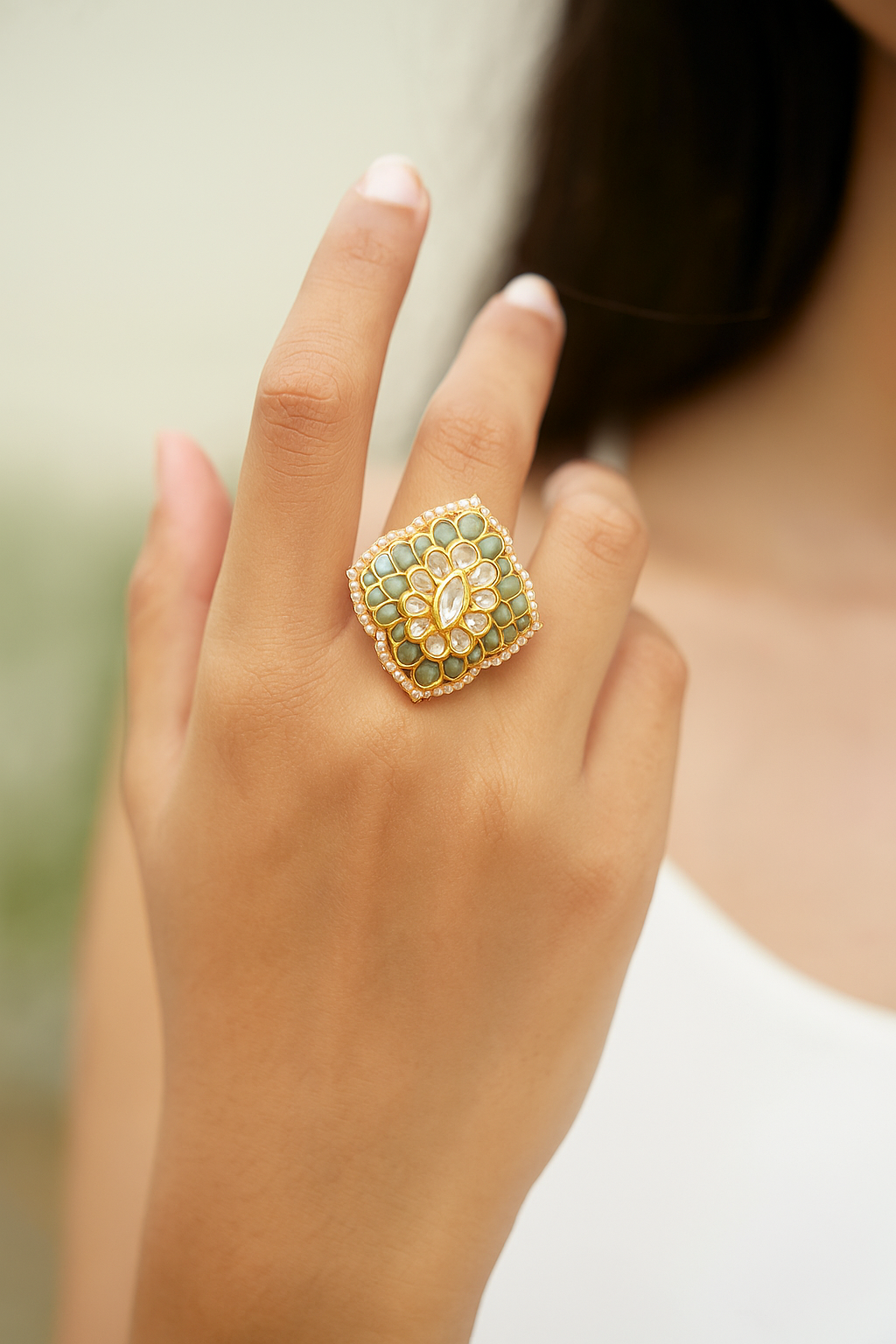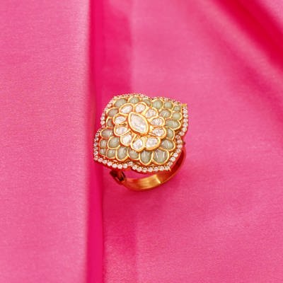 Mint Meher Jaipur Kundan Clover Ring-adds a poetic and culturally rich touch