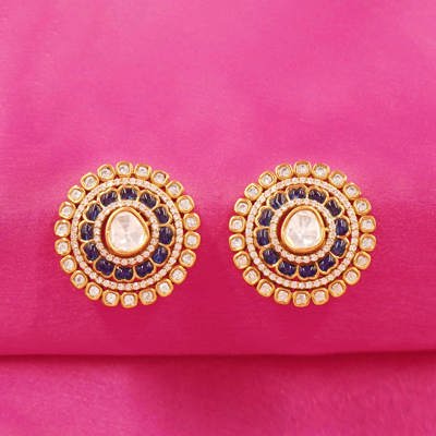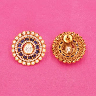 DESCRIPTION - Kundan Earring / Earring / Studs / Tops / Midnight Blue Radiance Stud Earrings Add a bold touch of elegance to your ensemble with these Midnight Blue Radiance Stud Earrings. Perfect for festive events, traditional celebrations, or evening wear, these statement earrings bring together classic charm with a rich, contemporary color palette — all in a premium artificial finish.