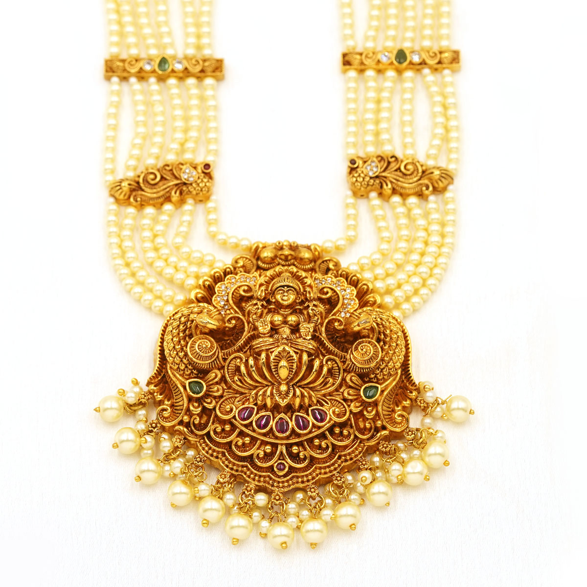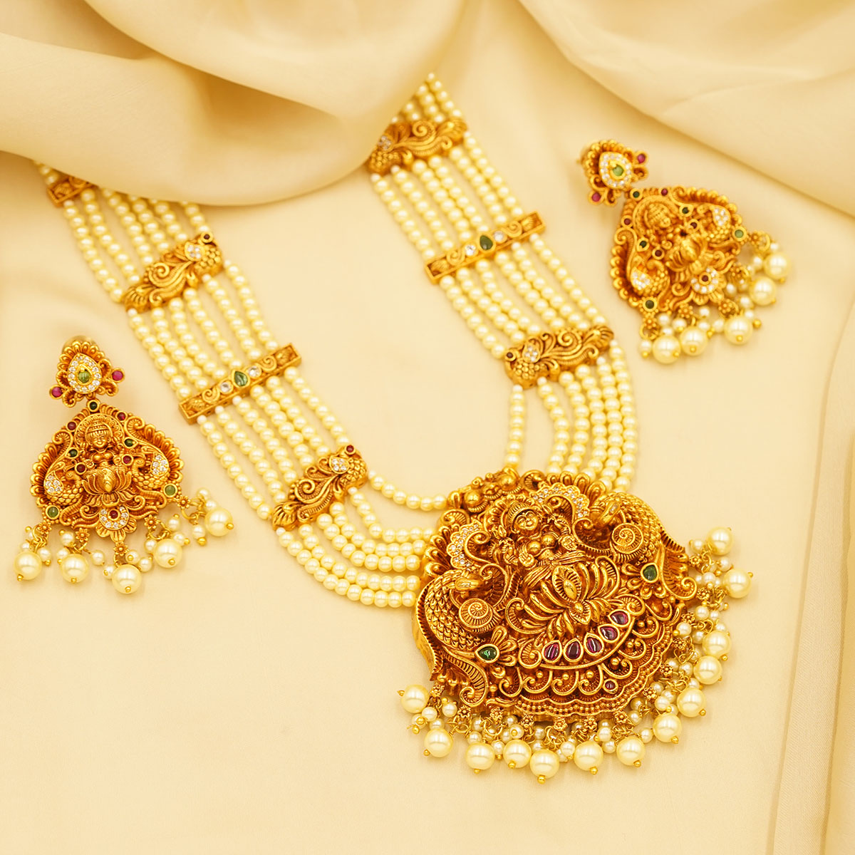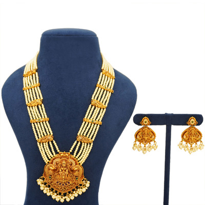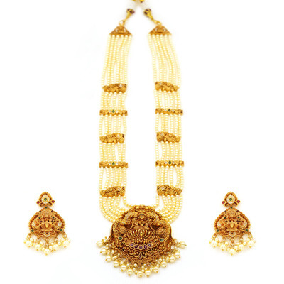 Regal Lakshmi Pearl Temple Necklace Set