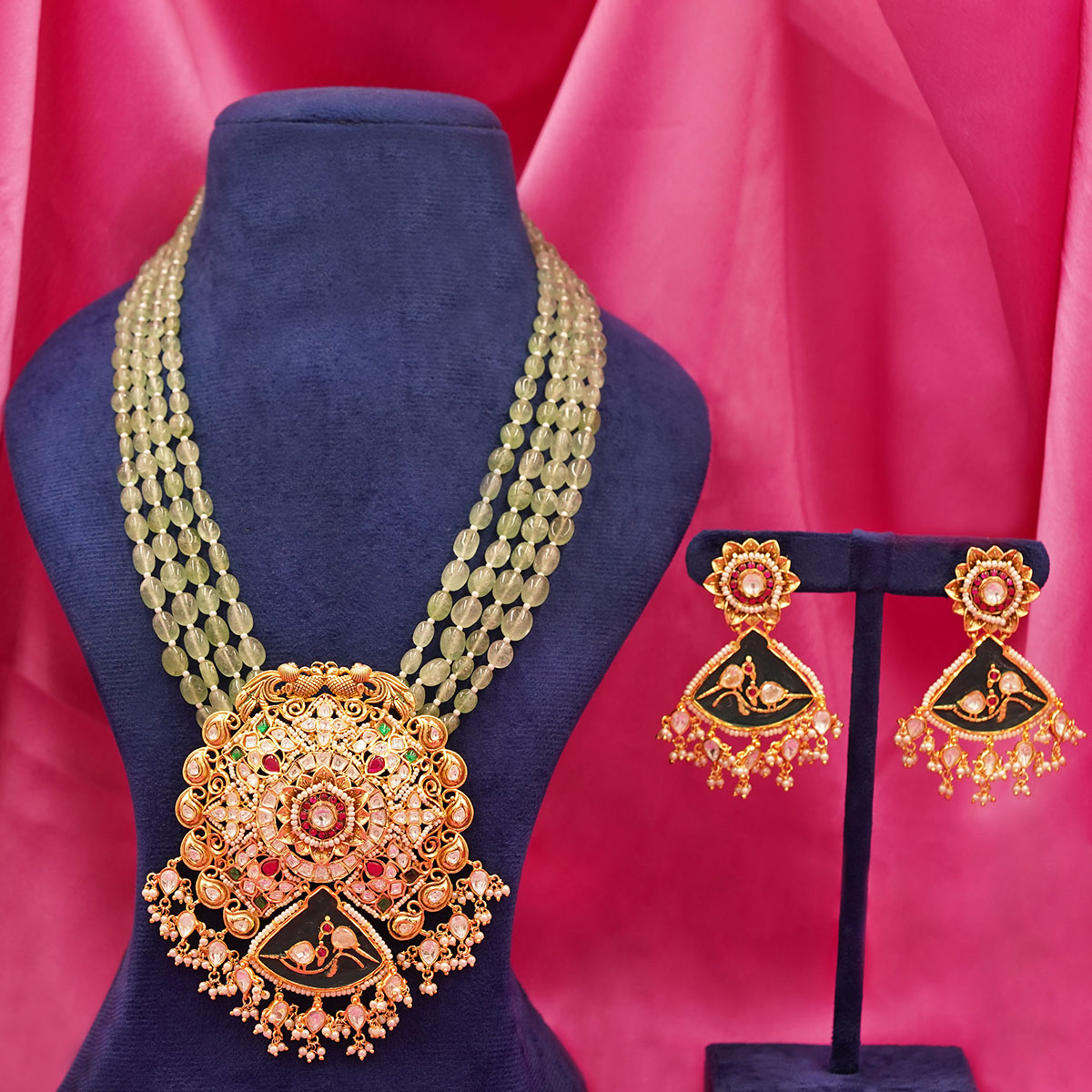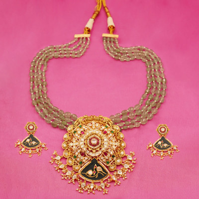 Royal Traditional Necklace Set – Designer Beaded & Stone Work Jewelry