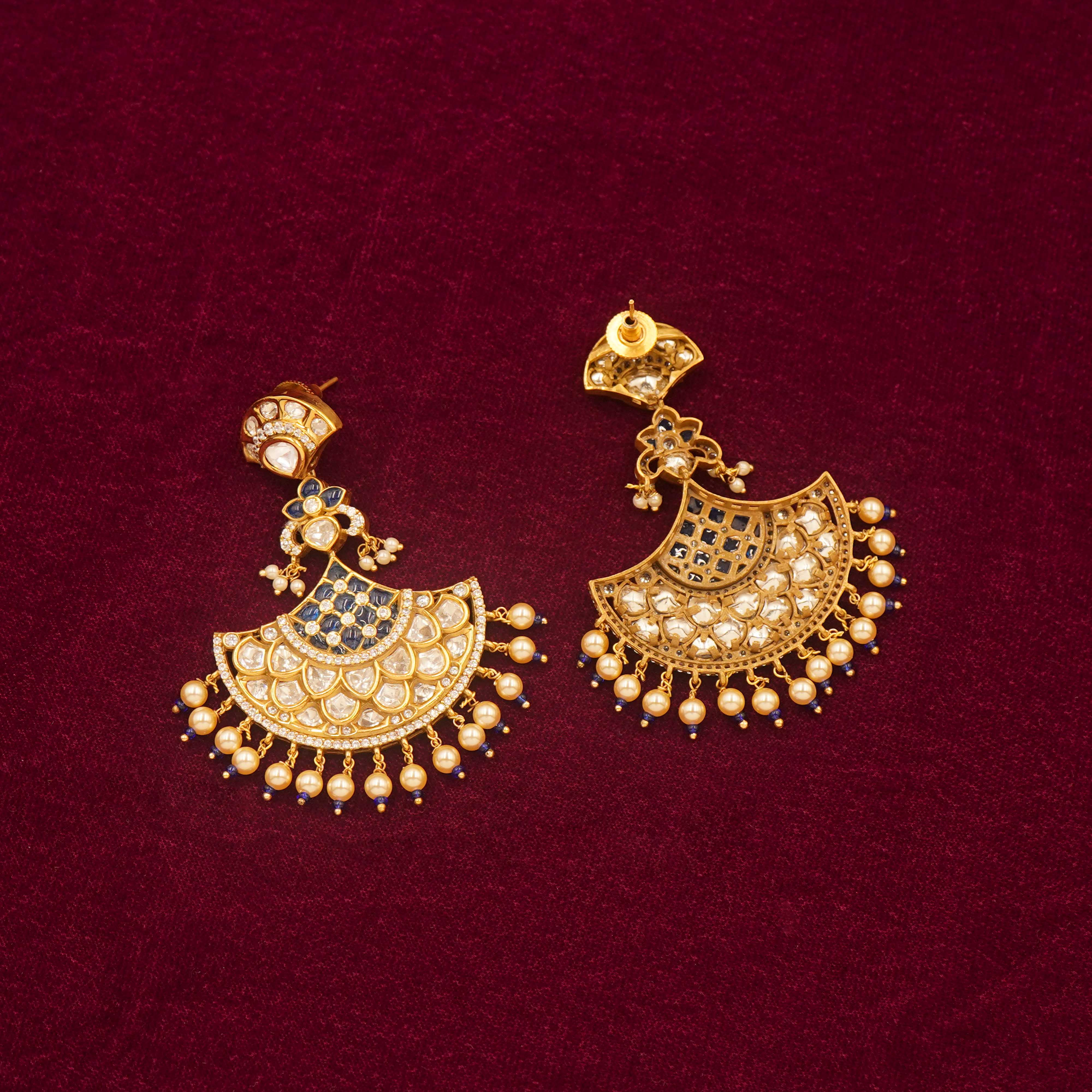 Velvet Moon Chandbali Earrings - oyal blue with the softness of crescent design