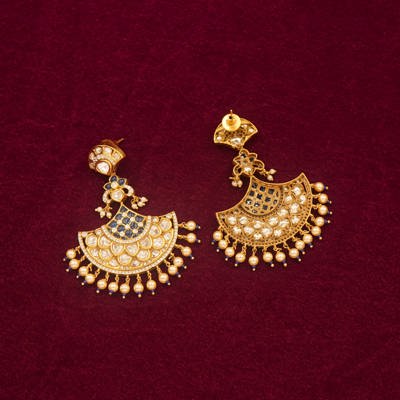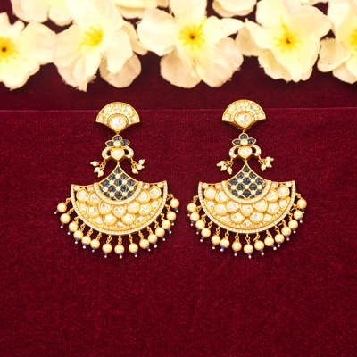 DESCRIPTION - Kundan Earring / Earring / Royal Blue Chandbali Earrings Unveil your inner royalty with these stunning royal blue chandbali earrings, designed to radiate festive elegance. The fan-shaped design is adorned with blue enamel work and shimmering stone detailing, gracefully finished with cascading pearl-like bead tassels for a luxurious touch.