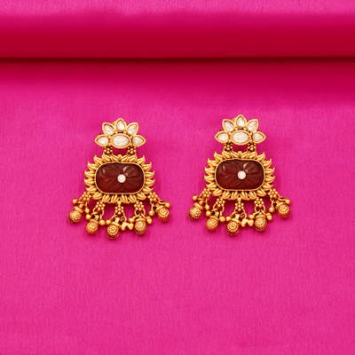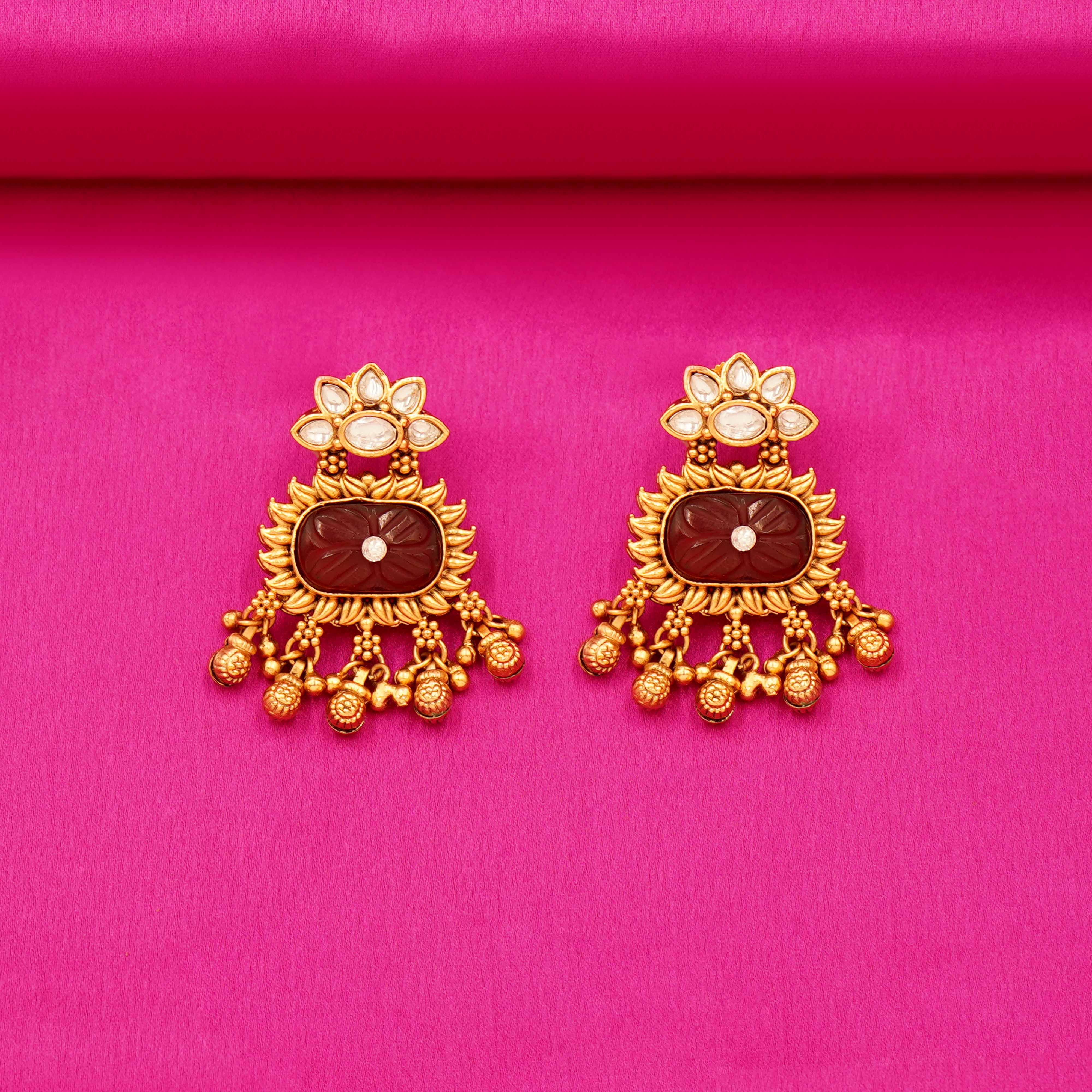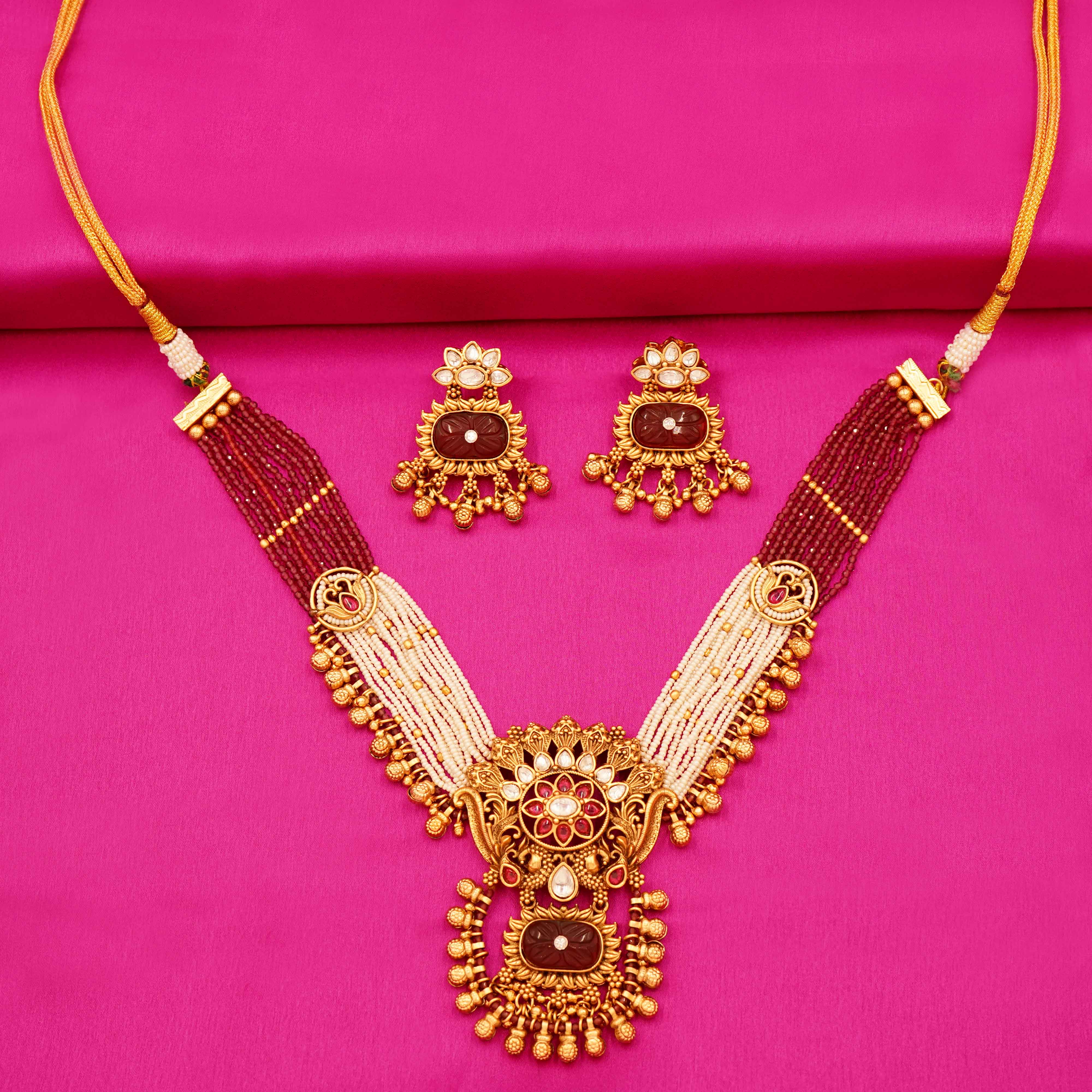 Antique Rajwadi Moti Haar Set | Jaipuri Red Stone Pendant Necklace with Earrings