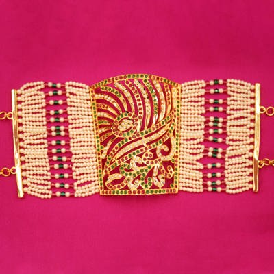 BajuBandMayur Rajkada: Jaipuri Kundan Kada in Regal Peacock Design