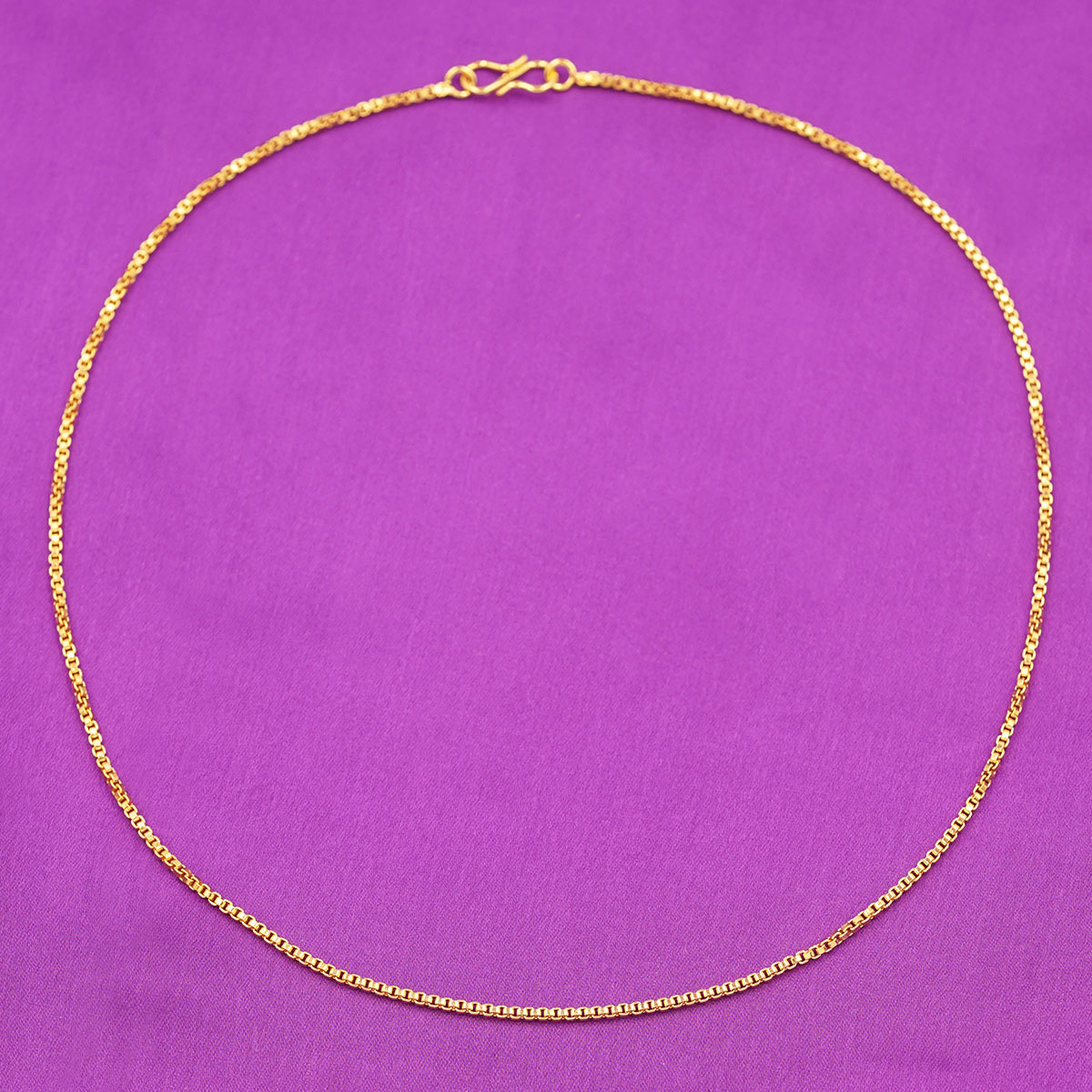 DESCRIPTION - THIS CLASSIC GOLD TONE PLANE CHAIN FEATURES A SLEEK, MINIMALIST DESIGN THAT COMPLEMENTS ANY OUTFIT. CRAFTED WITH A SMOOTH, LIGHTWEIGHT FINISH, IT DRAPES COMFORTABLY AROUND THE NECK AND ADDS A SUBTLE TOUCH OF ELEGANCE—PERFECT FOR EVERYDAY WEAR OR LAYERING WITH STATEMENT PIECES. ITS VERSATILE STYLE MAKES IT IDEAL FOR BOTH TRADITIONAL AND MODERN LOOKS, FROM CASUAL ATTIRE TO FESTIVE ENSEMBLES. SIMPLE, REFINED, AND ENDLESSLY WEARABLE.