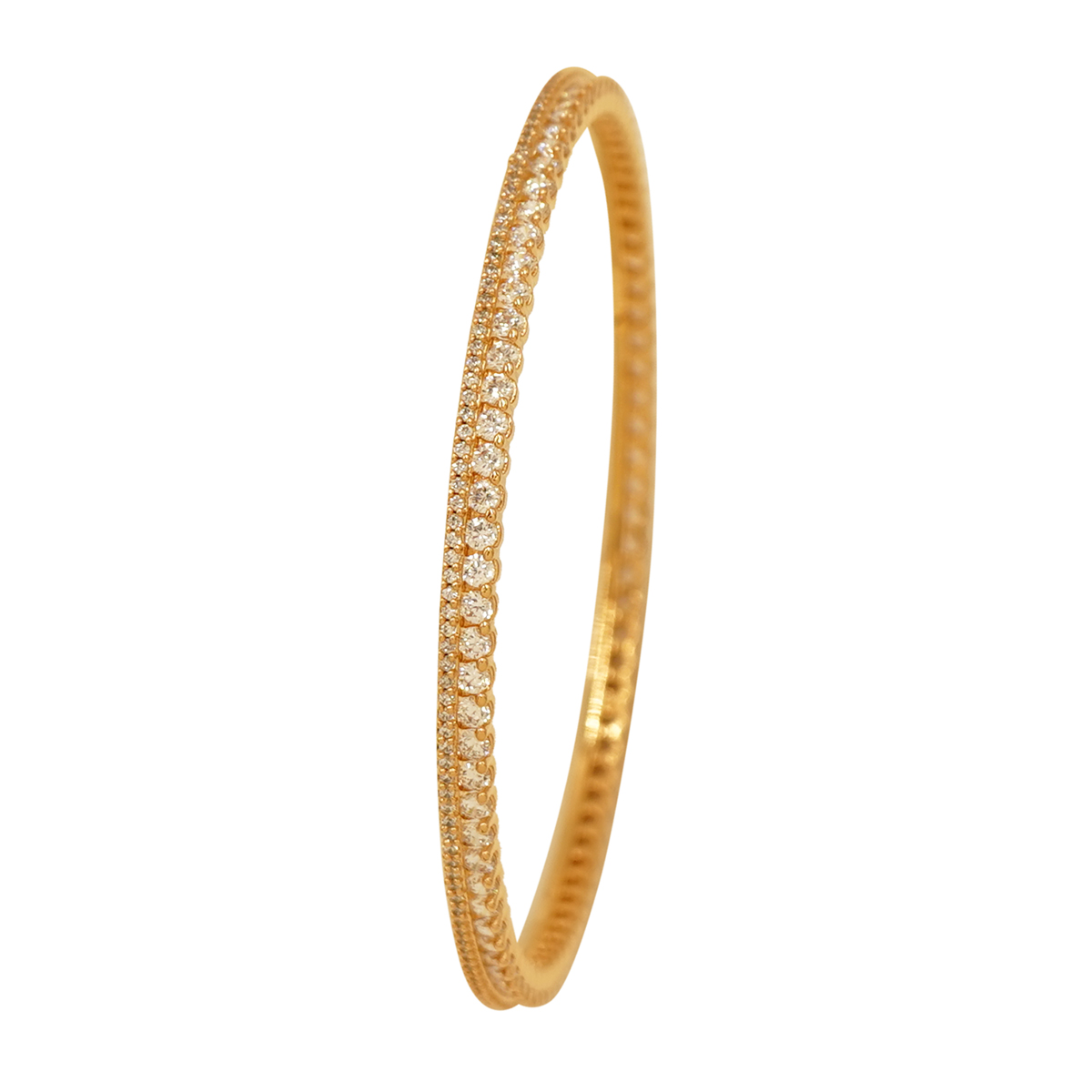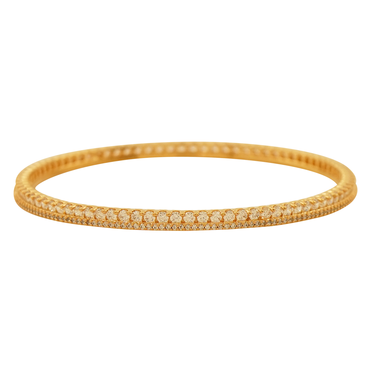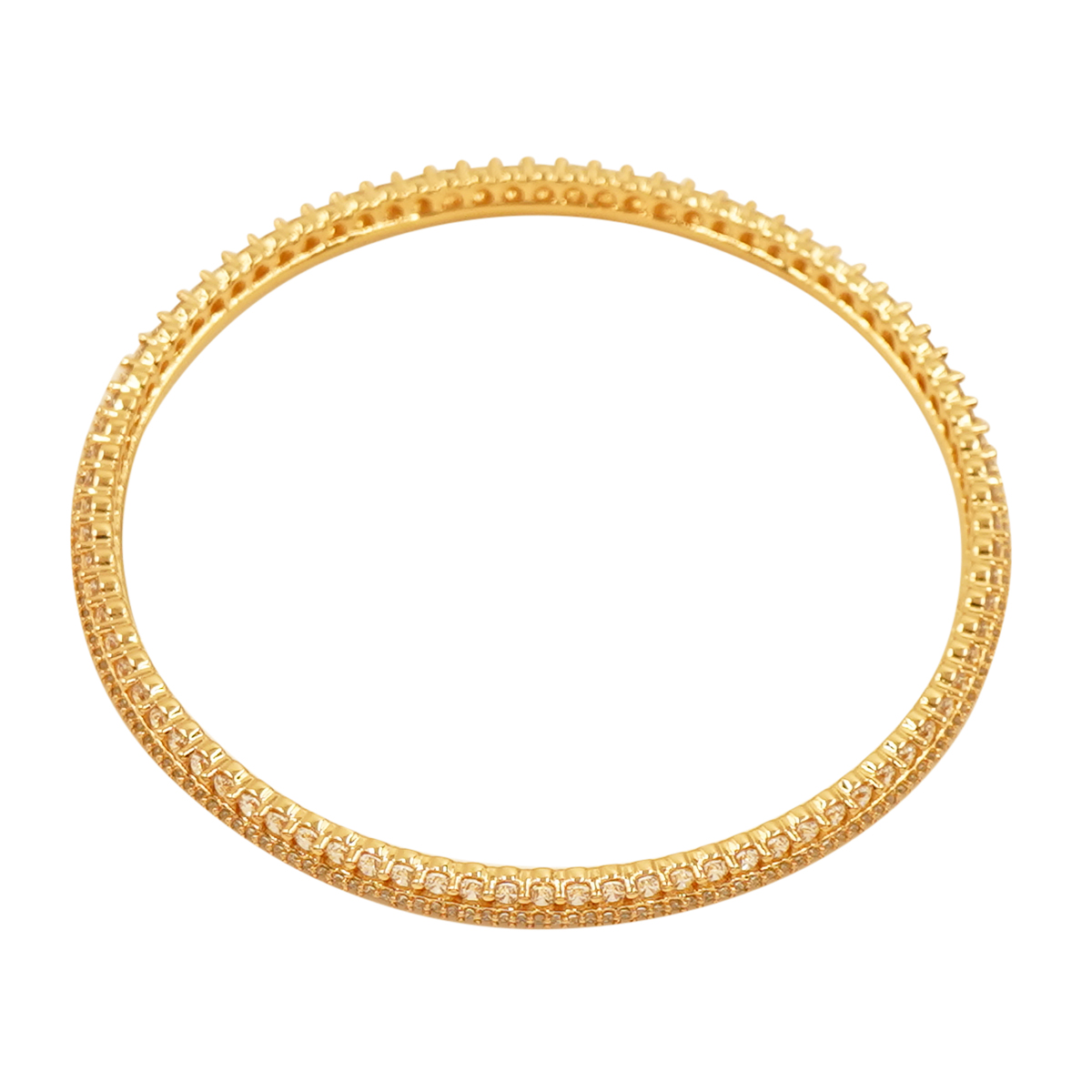 DESCRIPTION - These timeless gold-finish bangles feature a full-circle micro-studded stone pattern that adds a subtle yet sophisticated sparkle. Designed with a sleek and elegant profile, they are perfect for daily wear as well as festive and traditional occasions.