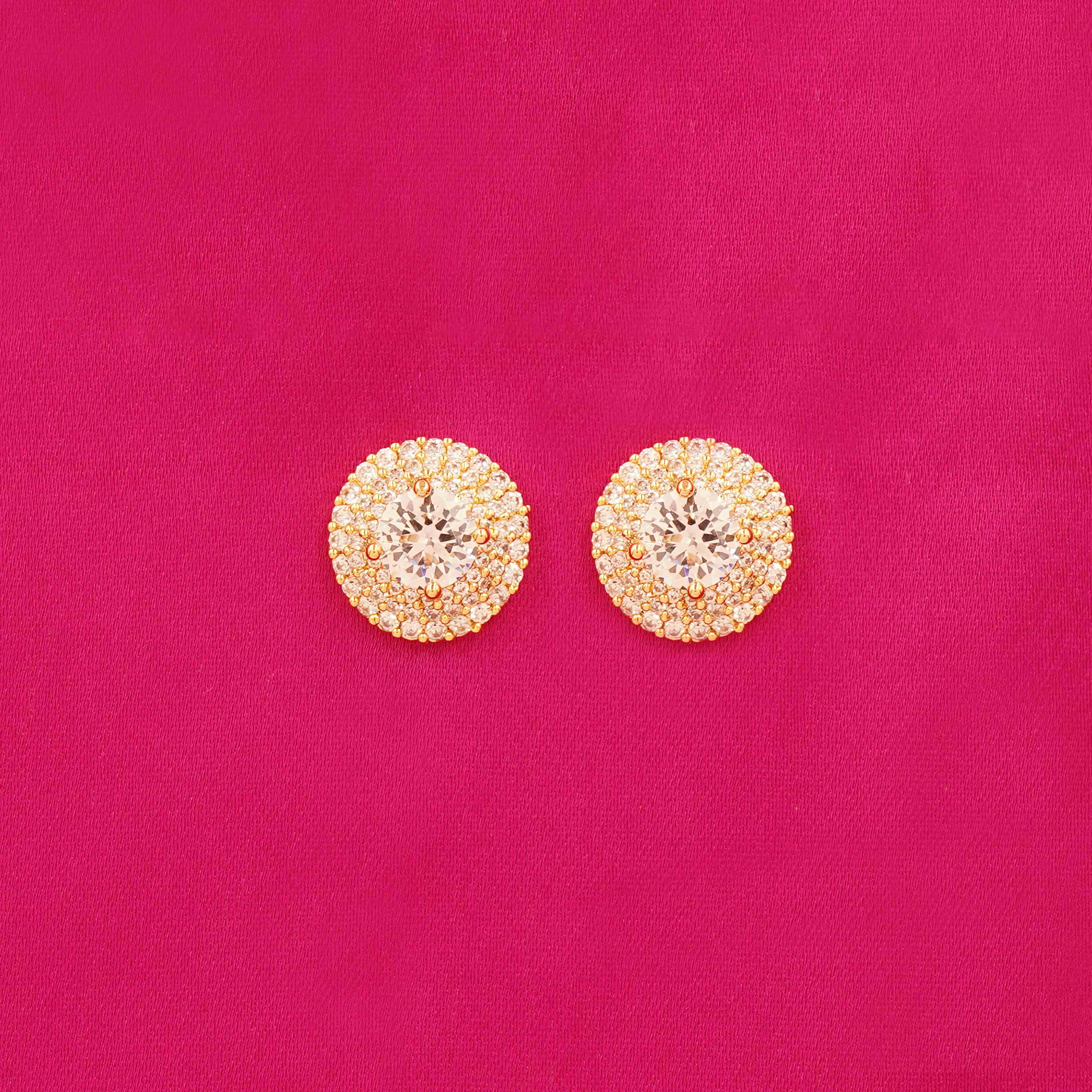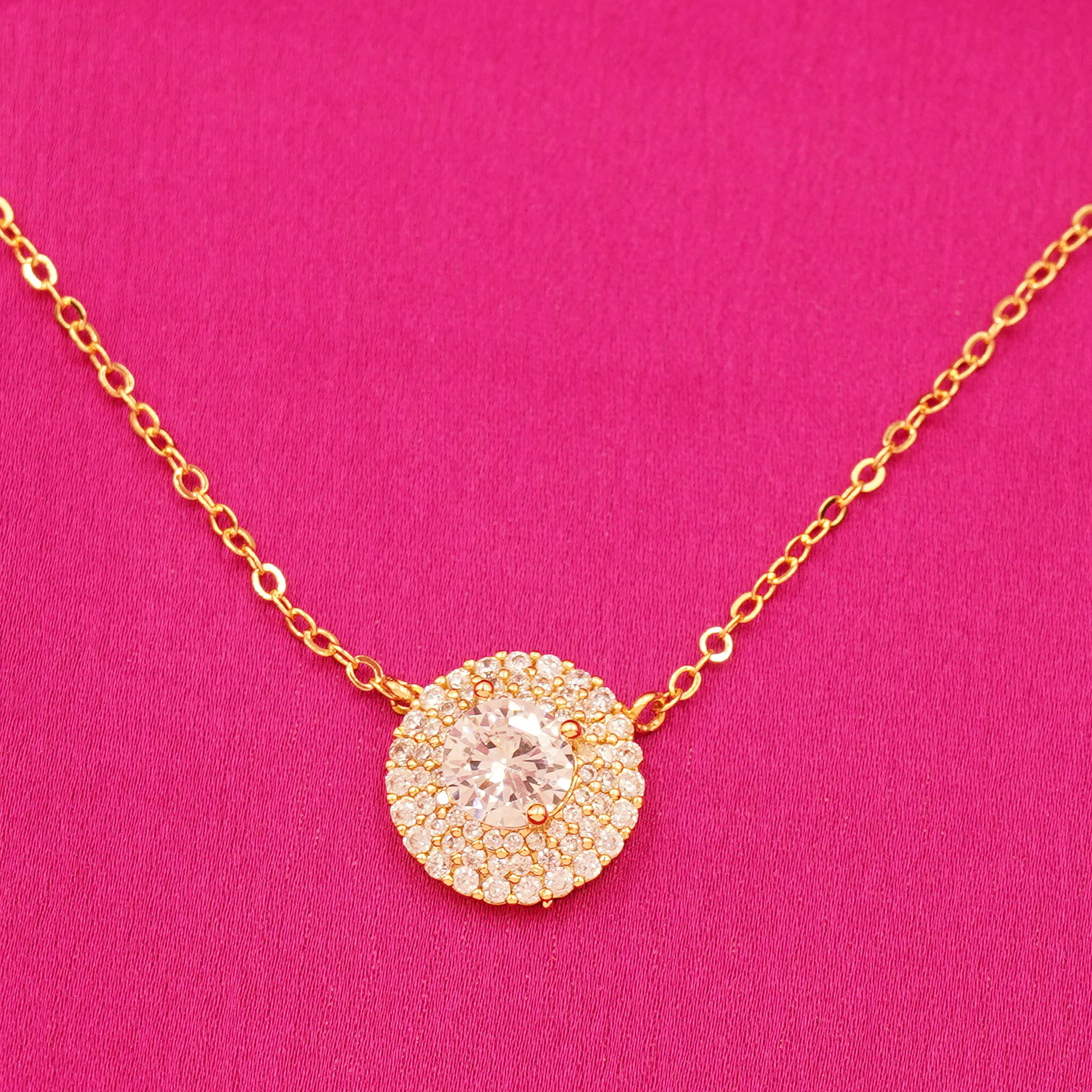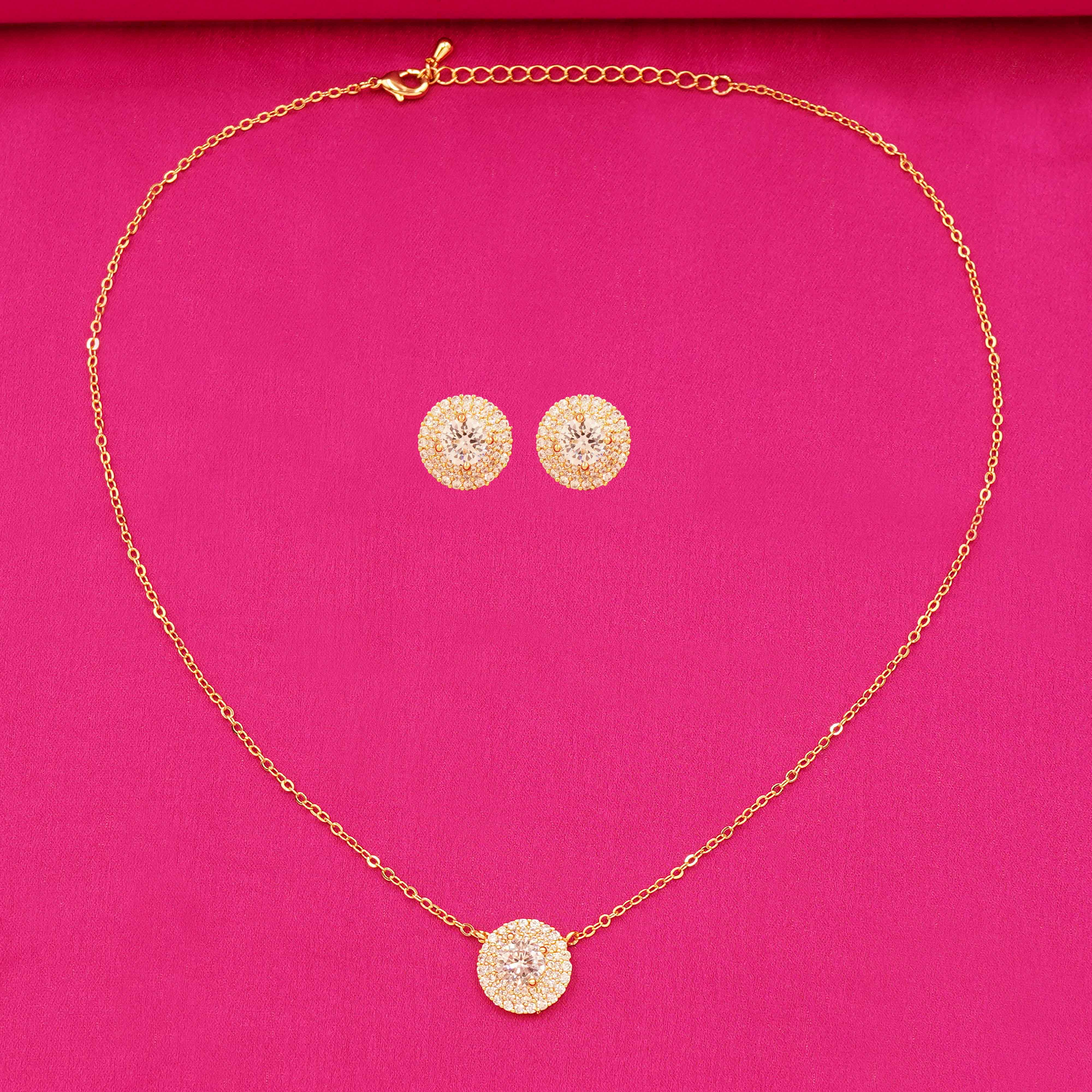 Classic Round Sparkling Stone Necklace and Earrings Jewelry Set
