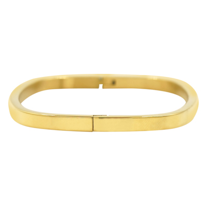 DESCRIPTION - CRATIAR BRACELET/BRACELET, THE BRACELET IS A GOLD-TONE BRACELET WITH A SLEEK, MODERN DESIGN. THE BRACELET APPEARS TO BE A SQUARE OR SLIGHTLY ROUNDED SQUARE BANGLE WITH A HINGE CLASP MECHANISM FOR OPENING AND CLOSING. THE SURFACE IS SMOOTH AND POLISHED, GIVING IT A CLEAN AND ELEGANT LOOK.