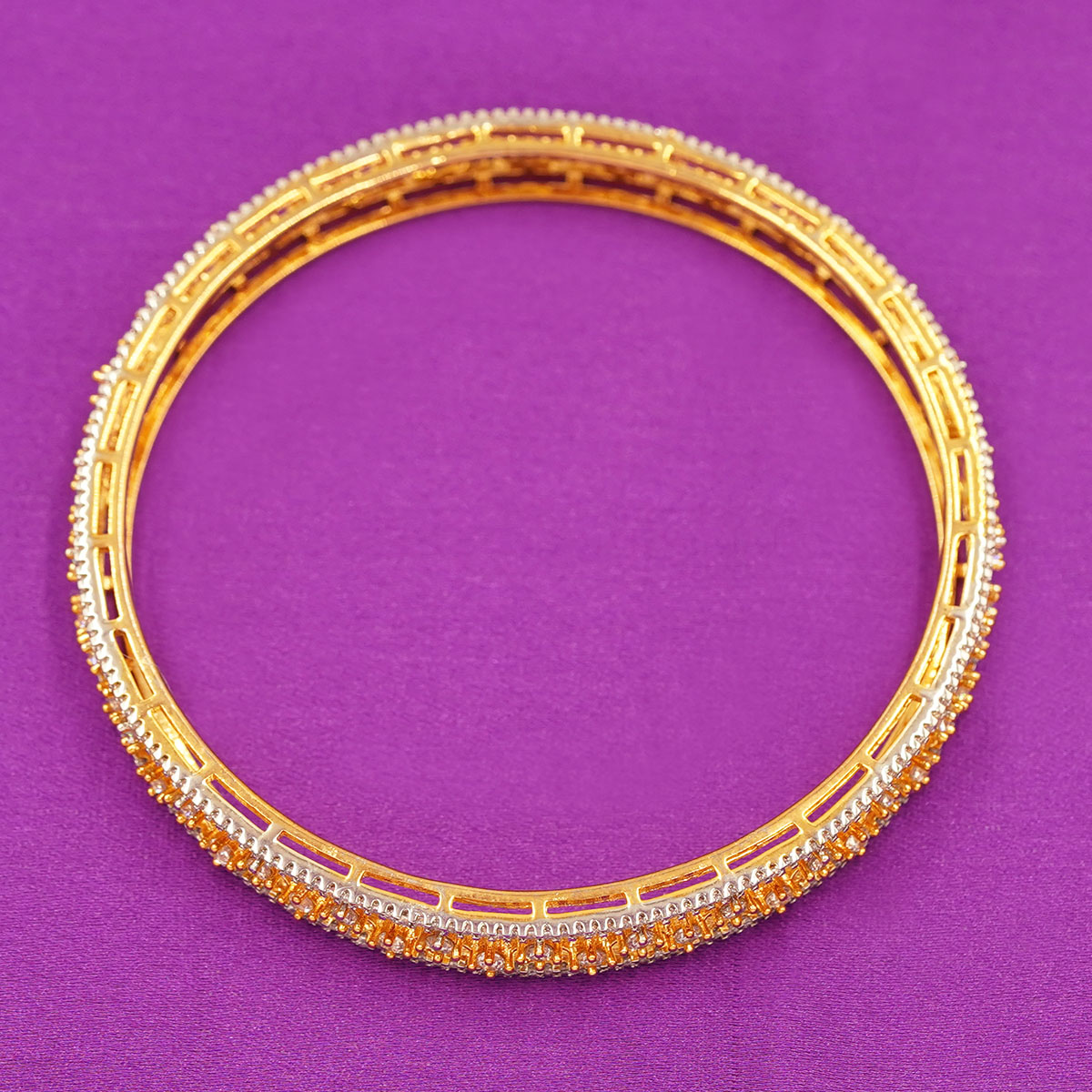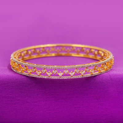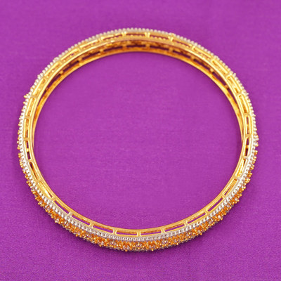 DESCRIPTION - This elegant bangle pair features a slim, lightweight design with sparkling CZ stones arranged in a star-chain pattern. The rich gold finish gives it a premium traditional look, while the intricate openwork detailing adds a modern touch. Perfect for festive wear, party outfits, or pairing with daily ethnic ensembles.