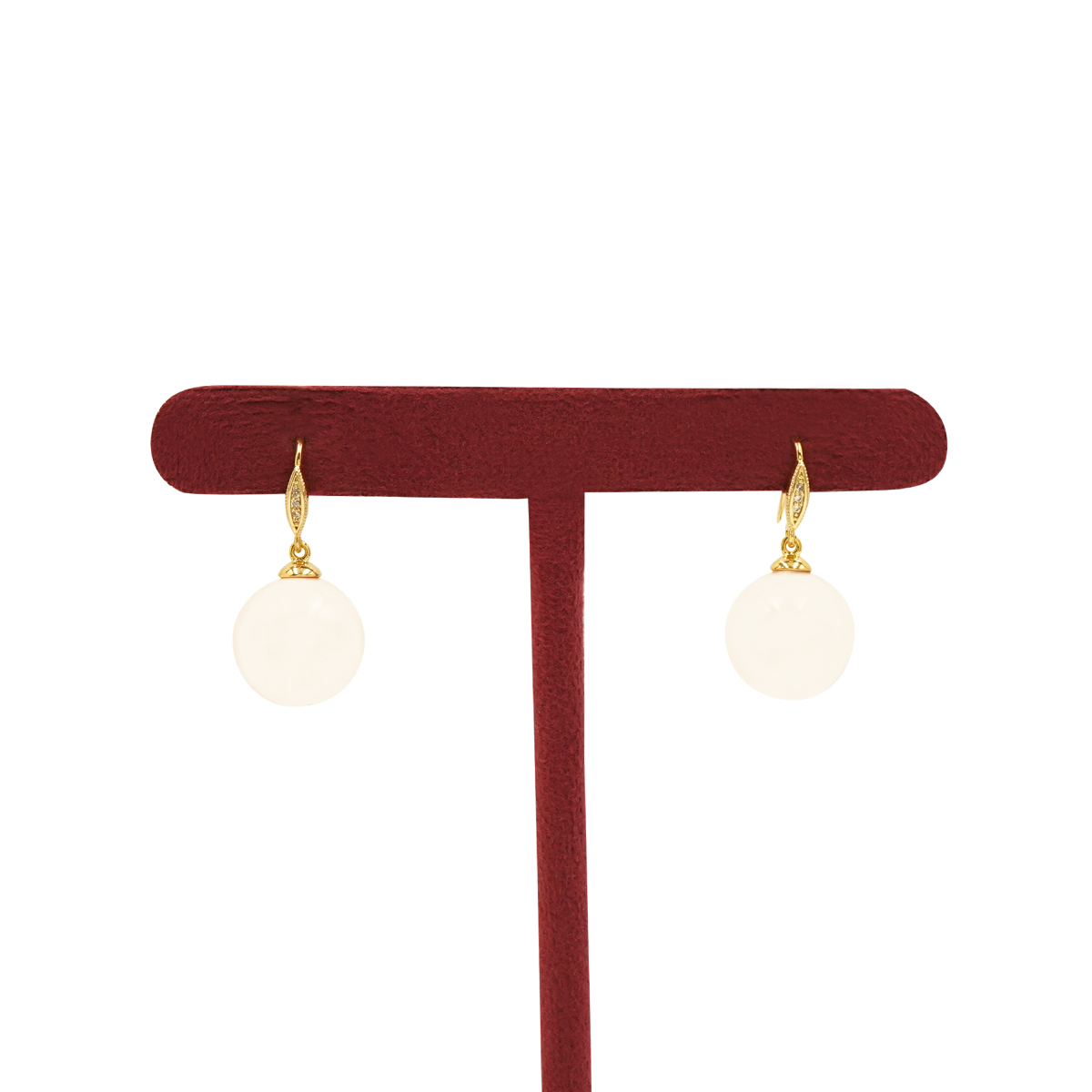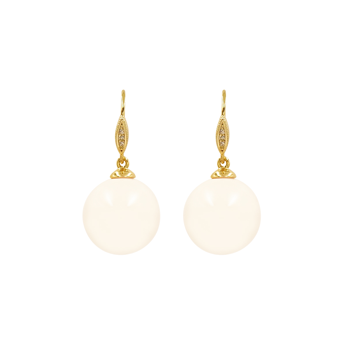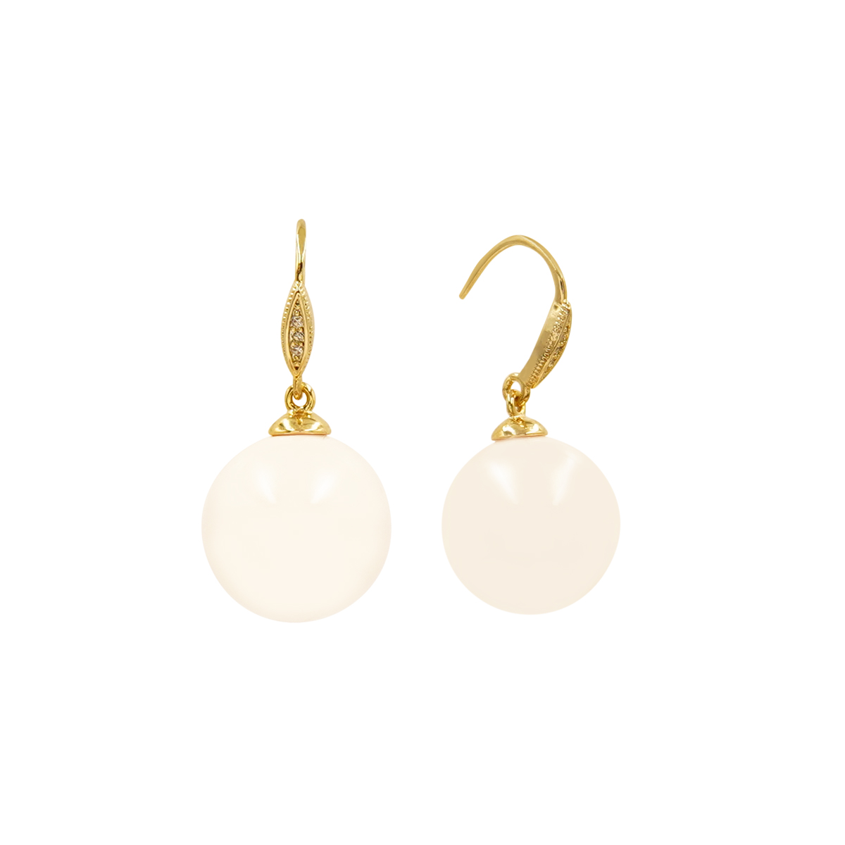 DESCRIPTION - These timeless earrings feature smooth, round pearl-style drops suspended from delicately detailed gold-toned hooks. Their clean and graceful design adds instant sophistication, making them perfect for both everyday wear and special occasions.