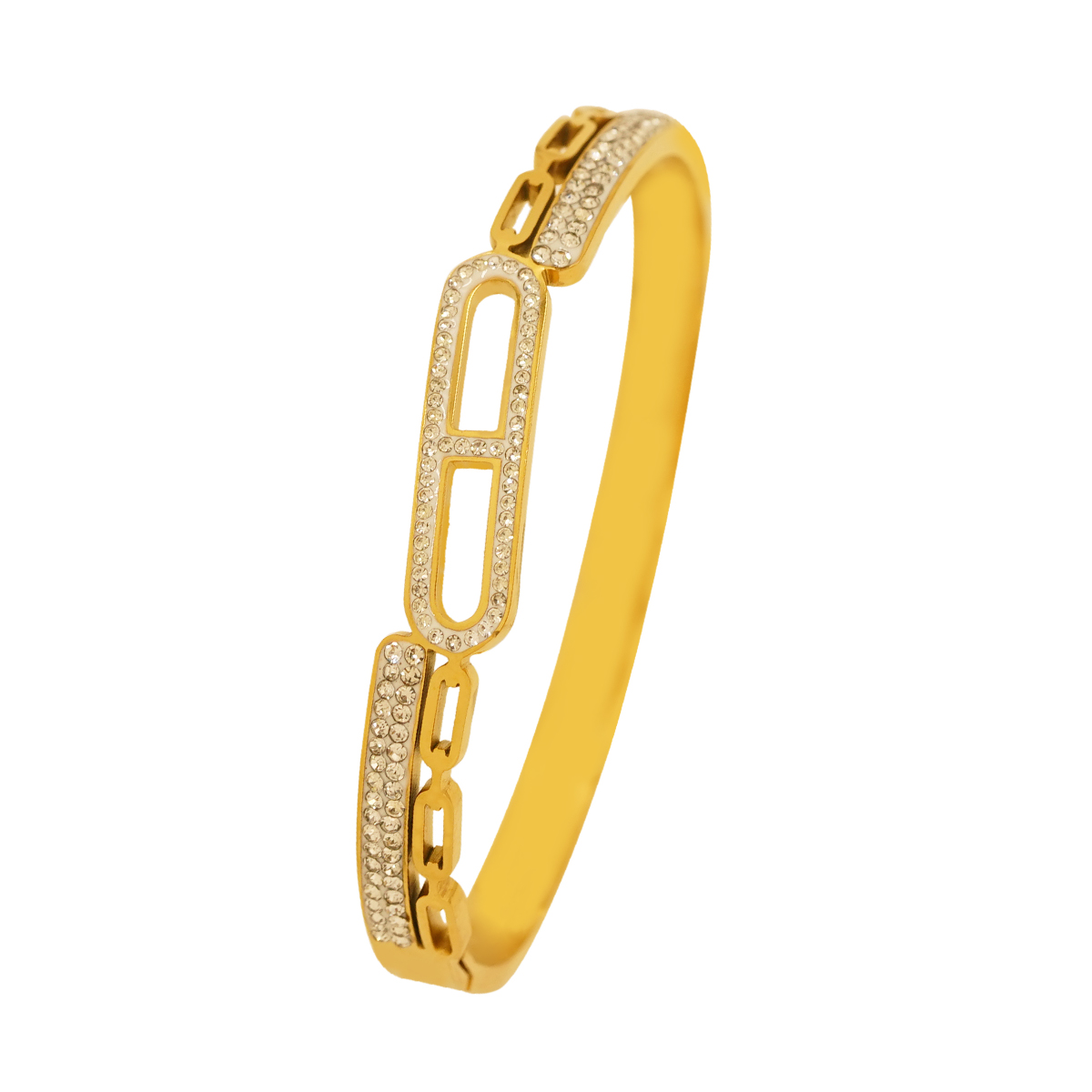 DESCRIPTION - This stylish bracelet features a modern chain-link design, highlighted with sparkling crystal-studded accents that add a touch of glamour. perfect accessory for daily wear, office outfits, parties, and special occasions. Lightweight and classy, this bracelet enhances any outfit with its chic and refined appeal.