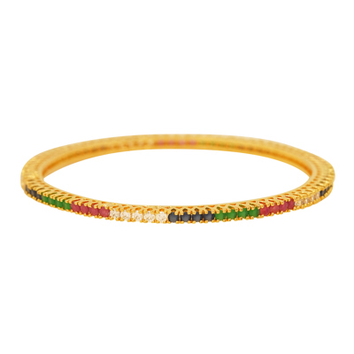 ELEGANT GOLD TONE BANGLES WITH MULTICOLOR STONE LINE DETAILING