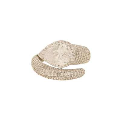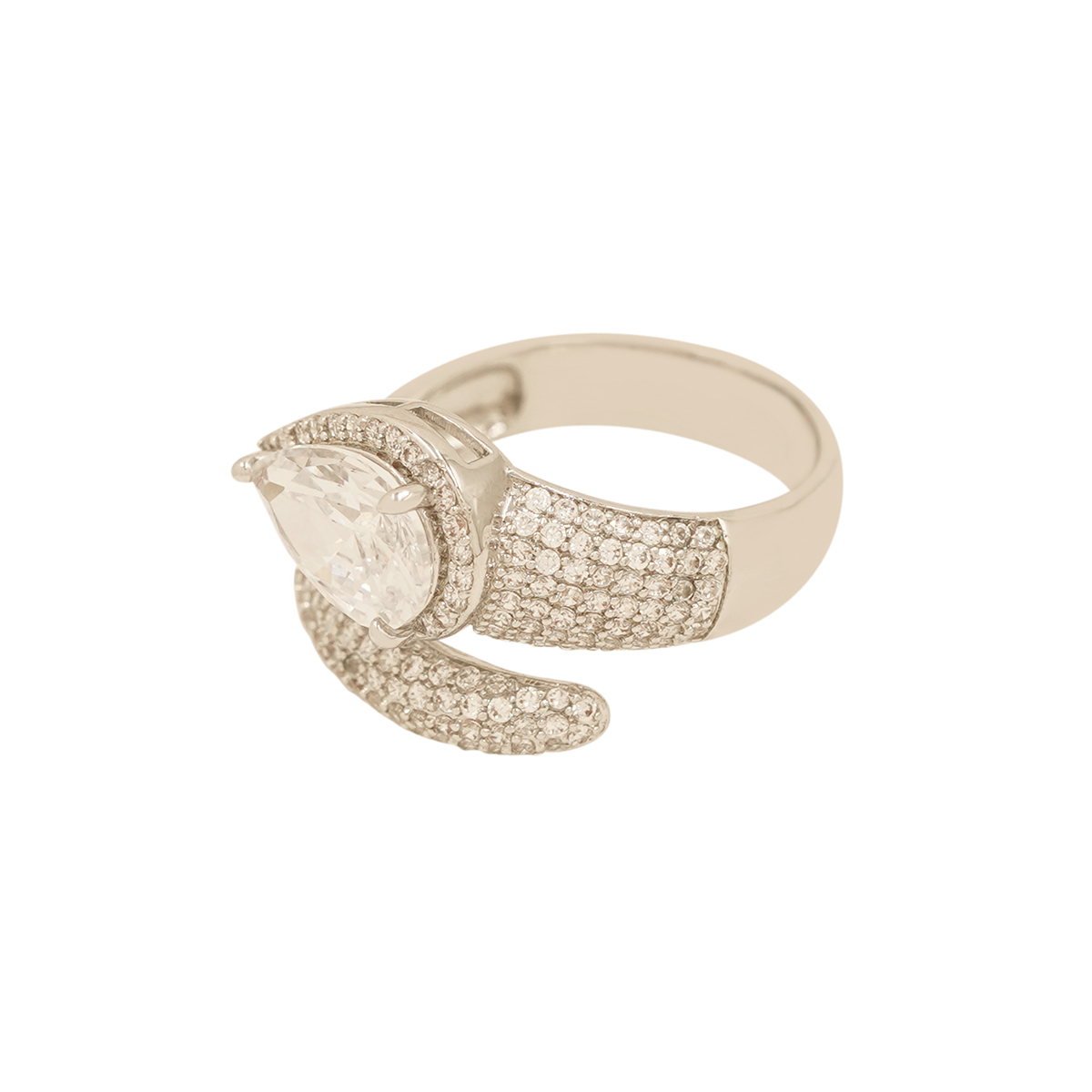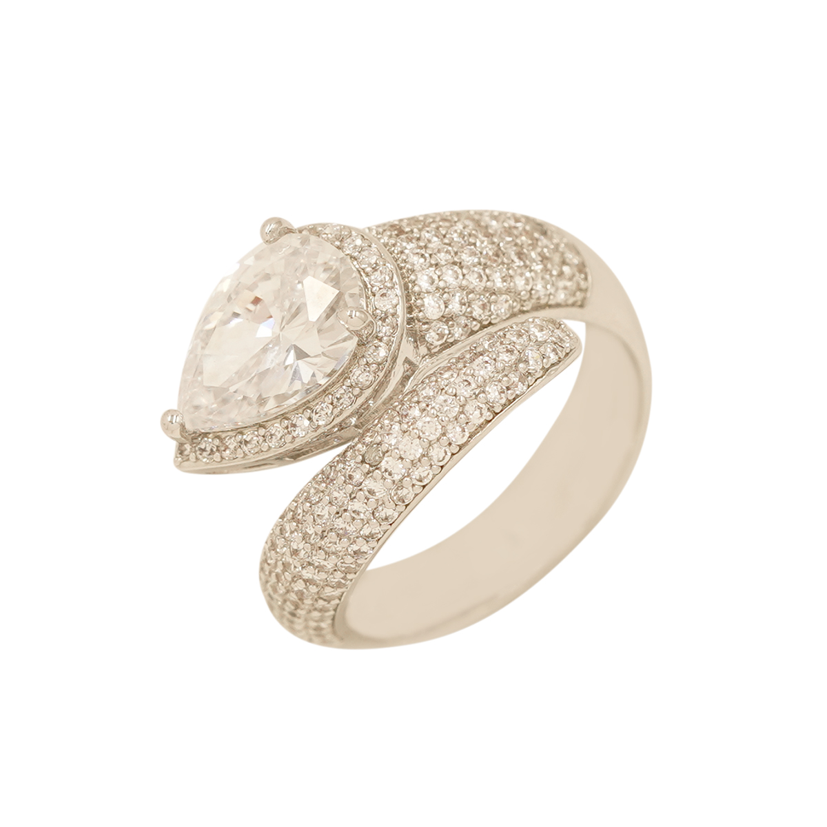 DESCRIPTION - A stunning marquise-cut center stone embraced by a shimmering swirl design, fully encrusted with delicate crystals. This ring blends elegance and modern style, making it a perfect statement piece for special occasions.