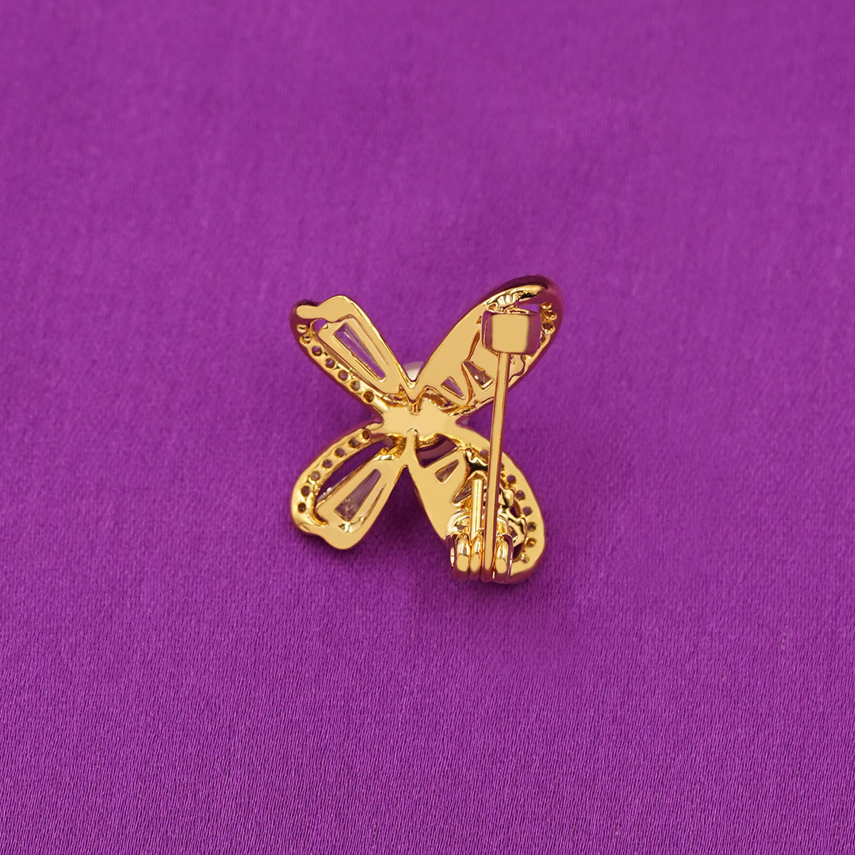 DESCRIPTION - This charming brooch features a beautifully crafted butterfly design, highlighted by a luminous pearlescent center bead that adds softness and sophistication. Each wing is adorned with sparkling crystal petals, bordered with delicate micro-stones that create a radiant, high-end shine.