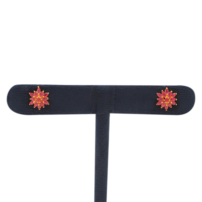 DESCRIPTION - These beautiful pink floral stud earrings feature a delicate floral design with sparkling pink stones and gold-tone detailing in the center. Simple yet elegant, These earrings are a perfect choice for daily wear, festive occasions, parties, or as a gift. they have a sophisticated look that suits women of all ages.