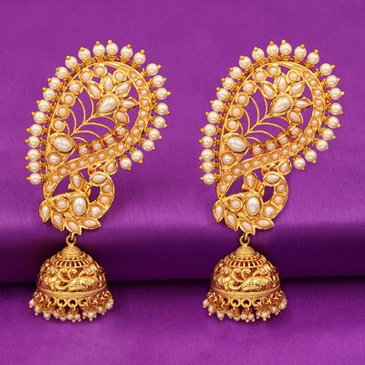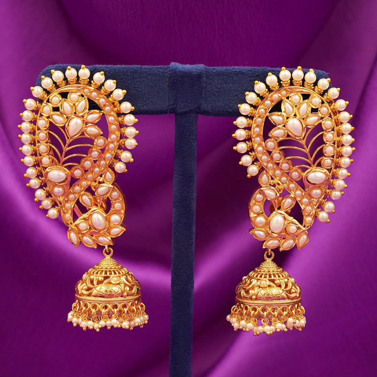 DESCRIPTION - These stunning handcrafted earrings feature intricate floral and paisley patterns adorned with shimmering stones and delicate pearls. Perfect for weddings, celebrations, or adding a regal touch to any occasion.