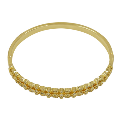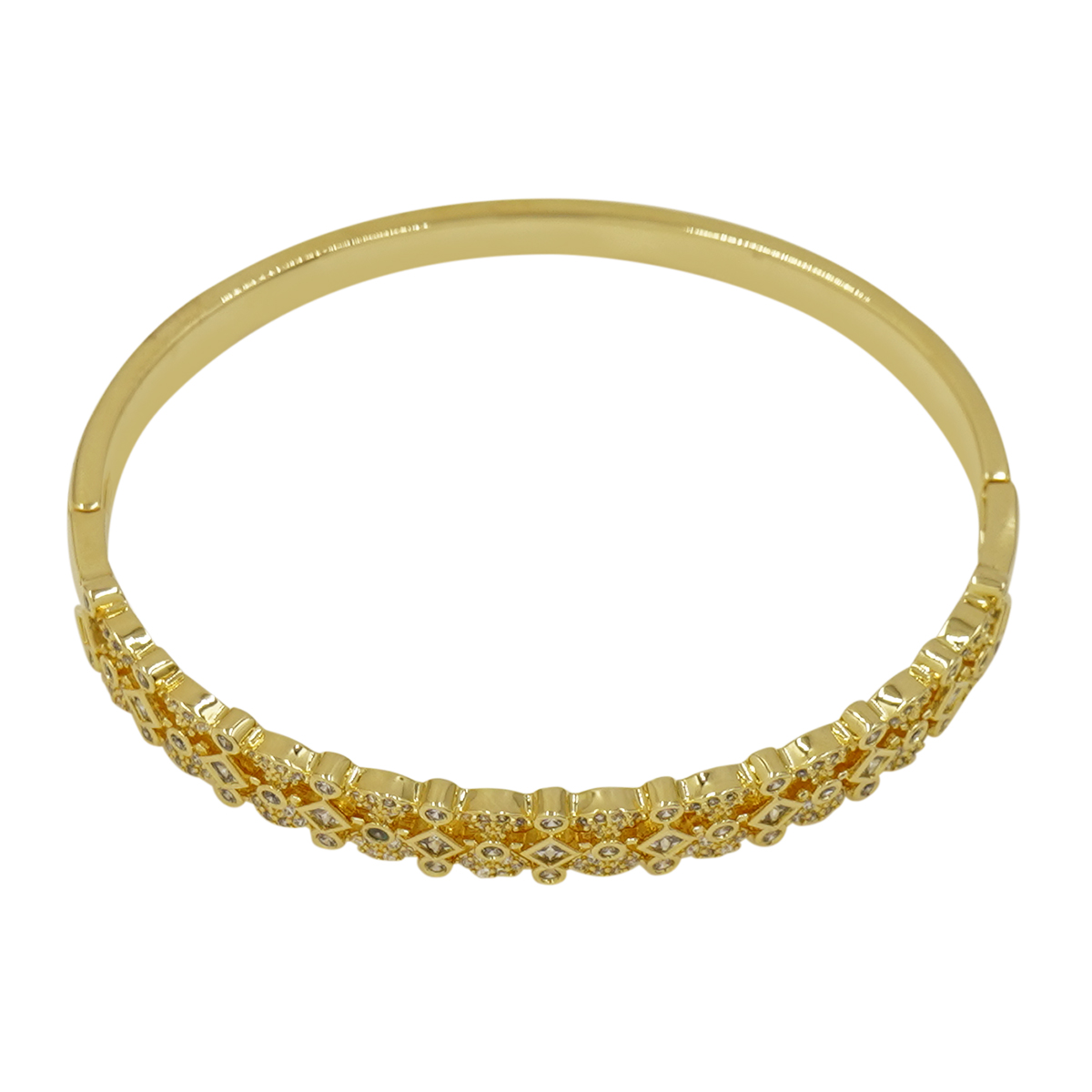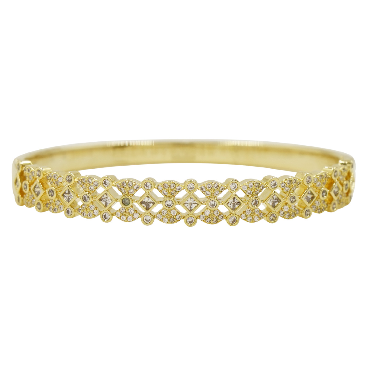 Gold-Tone Cubic Zirconia Lattice Design Bangle Bracelet