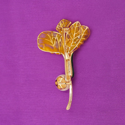 Golden Enamel Flower Brooch with Crystal Center & Pearl Accent