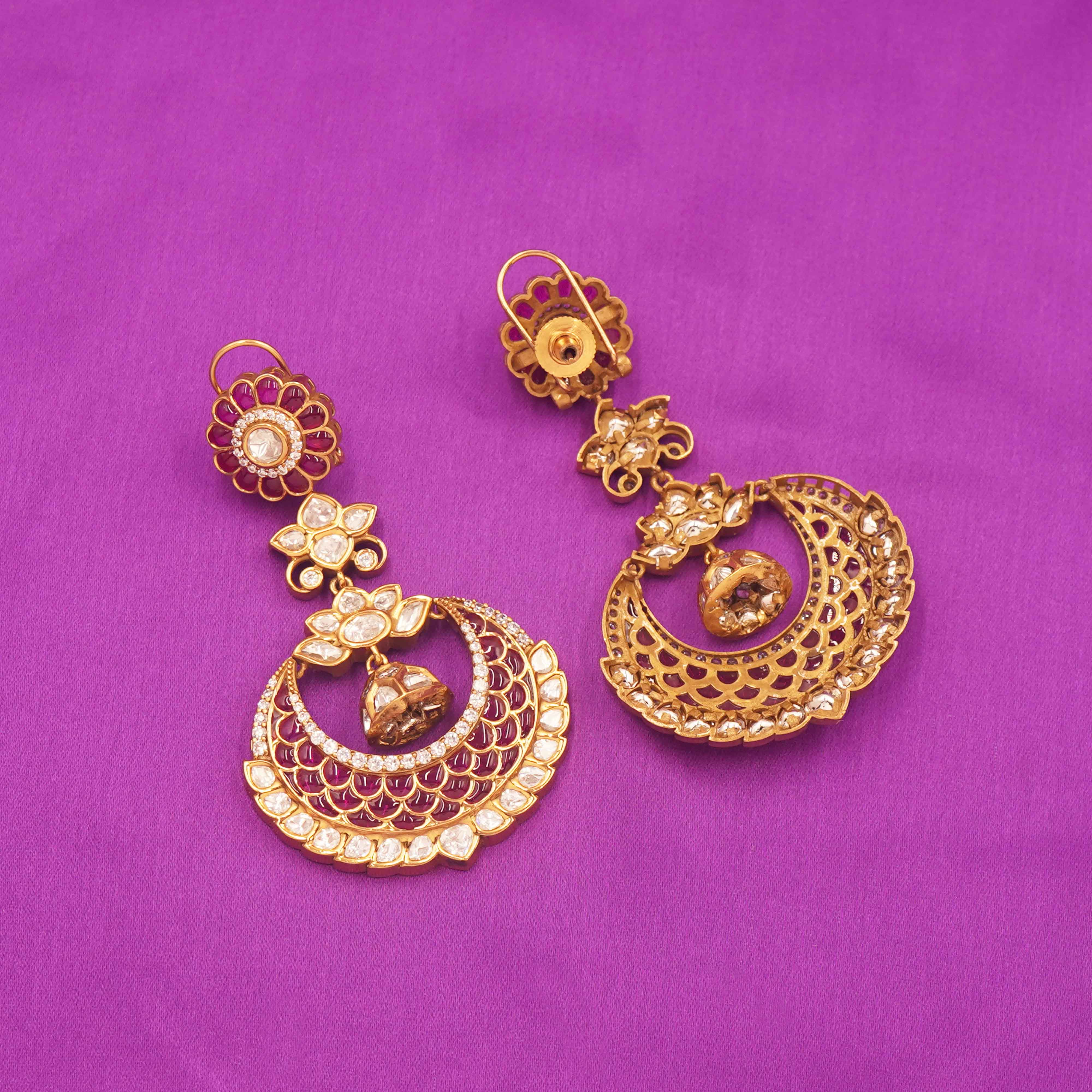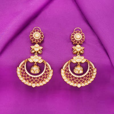 DESCRIPTION - KUNDAN EARRING/ Floral Motif Chandbali Earrings -The jhumka accent in the center adds depth and a touch of regal charm, making them perfect for weddings, sangeet, or any grand celebration. Lightweight yet eye-catching, these earrings are a must-have in your ethnic jewelry collection.
