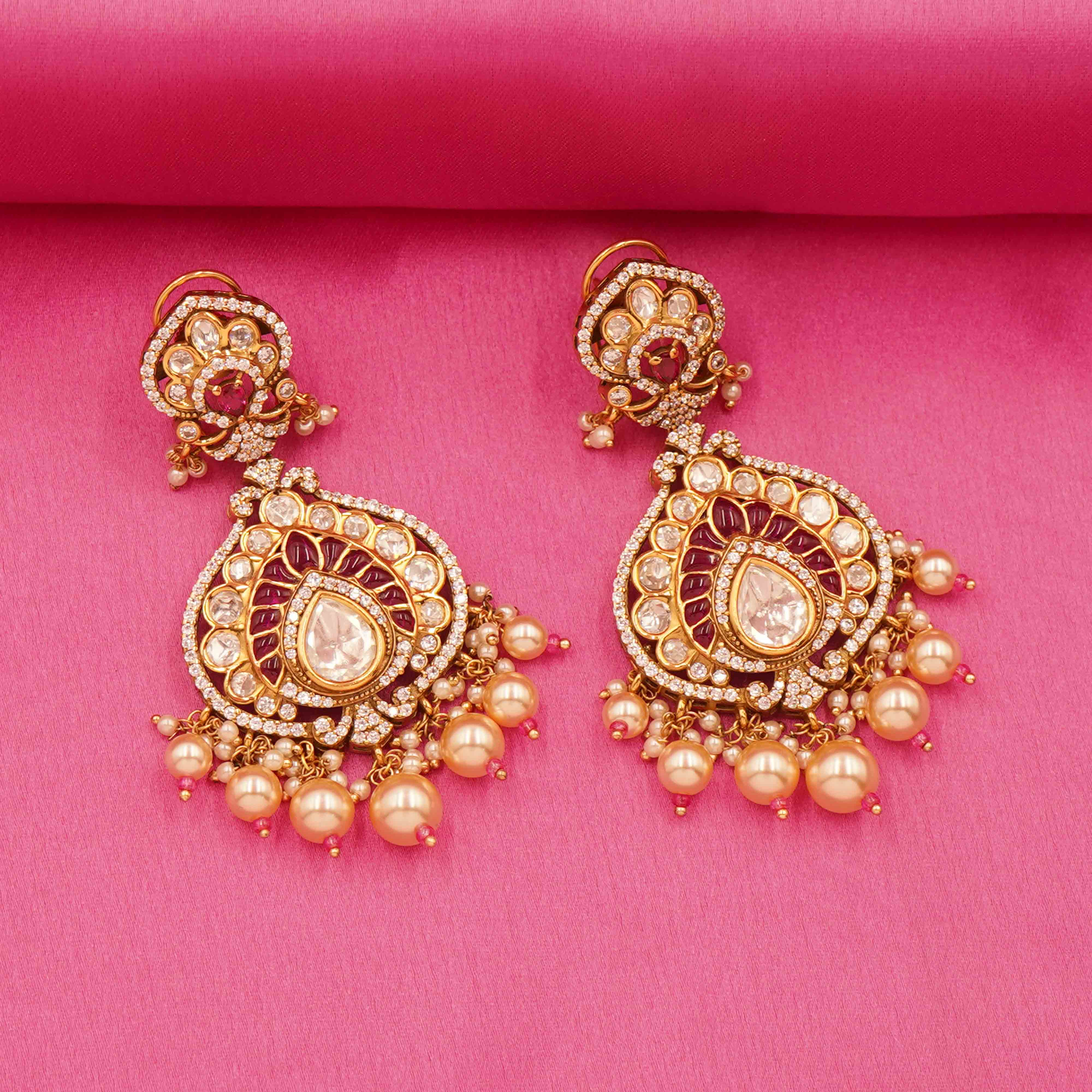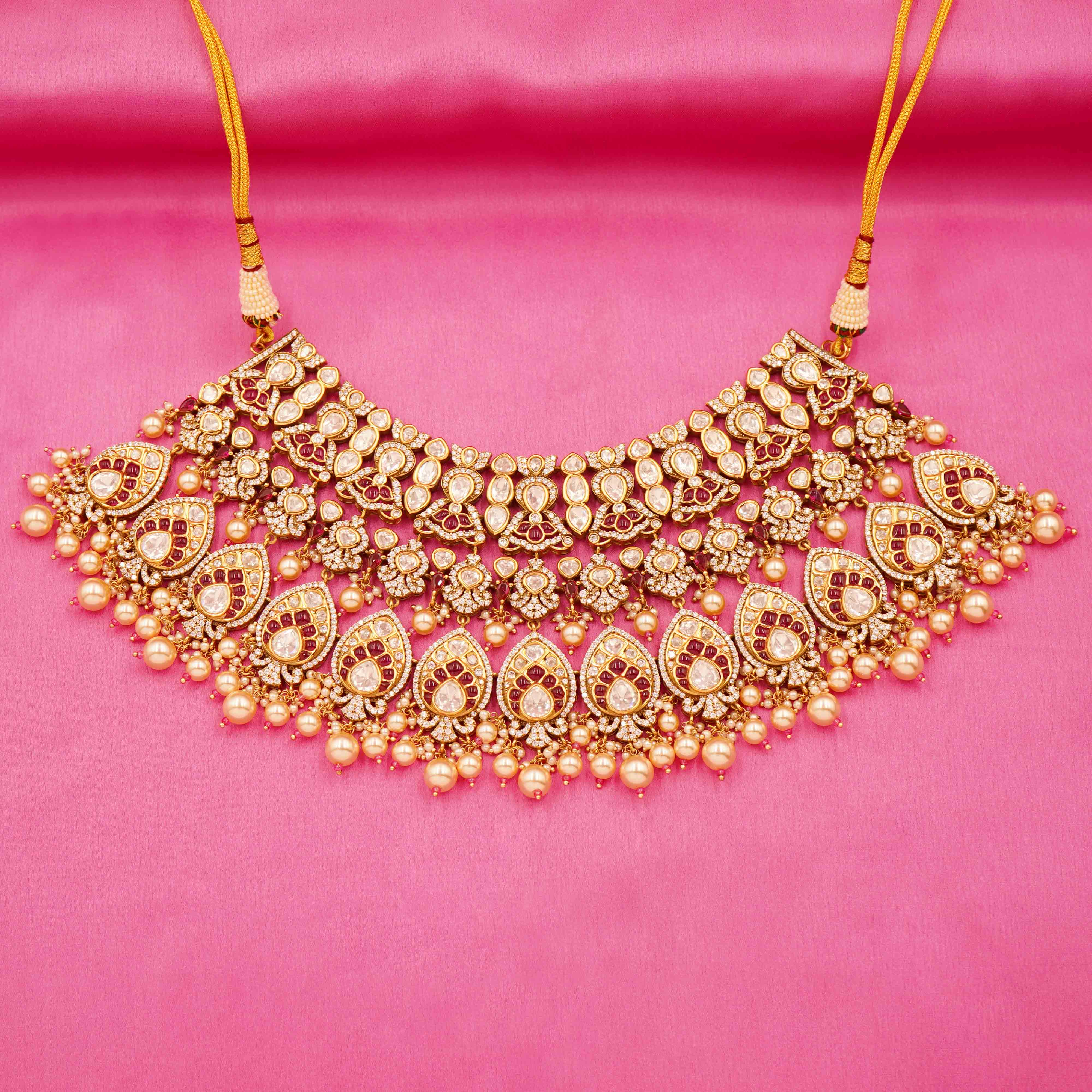DESCRIPTION - Kundan Necklace Set / Choker Set / Maroon Kundan Bridal Necklace Set Drape yourself in splendor with the Bridal Set, a breathtaking harmony of tradition and elegance. Designed for the modern bride who honors timeless tradition, this set is a celebration of heritage, beauty, and bridal glory. Finished with multi-strand side beading, this necklace adds a regal charm to your festive and bridal ensembles.