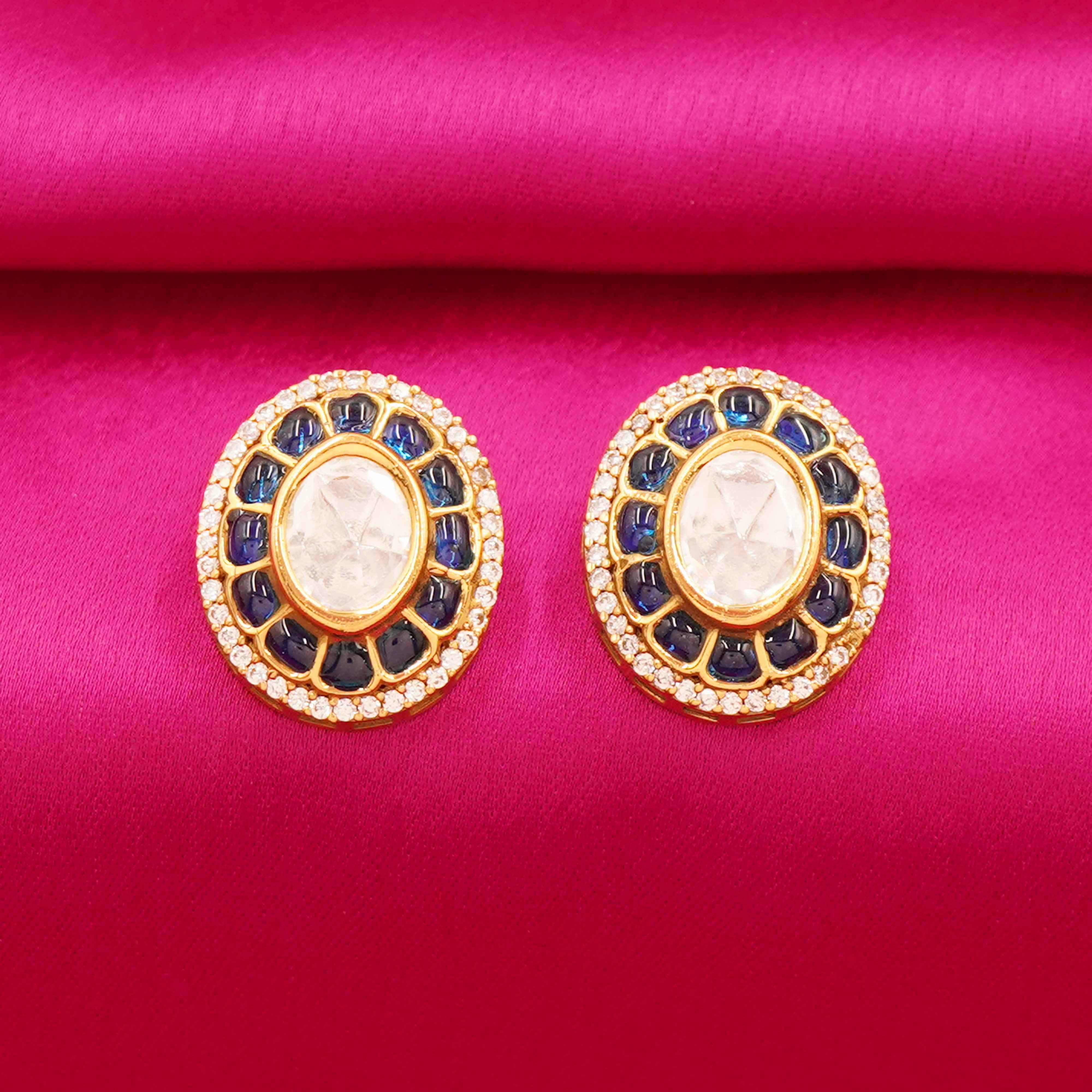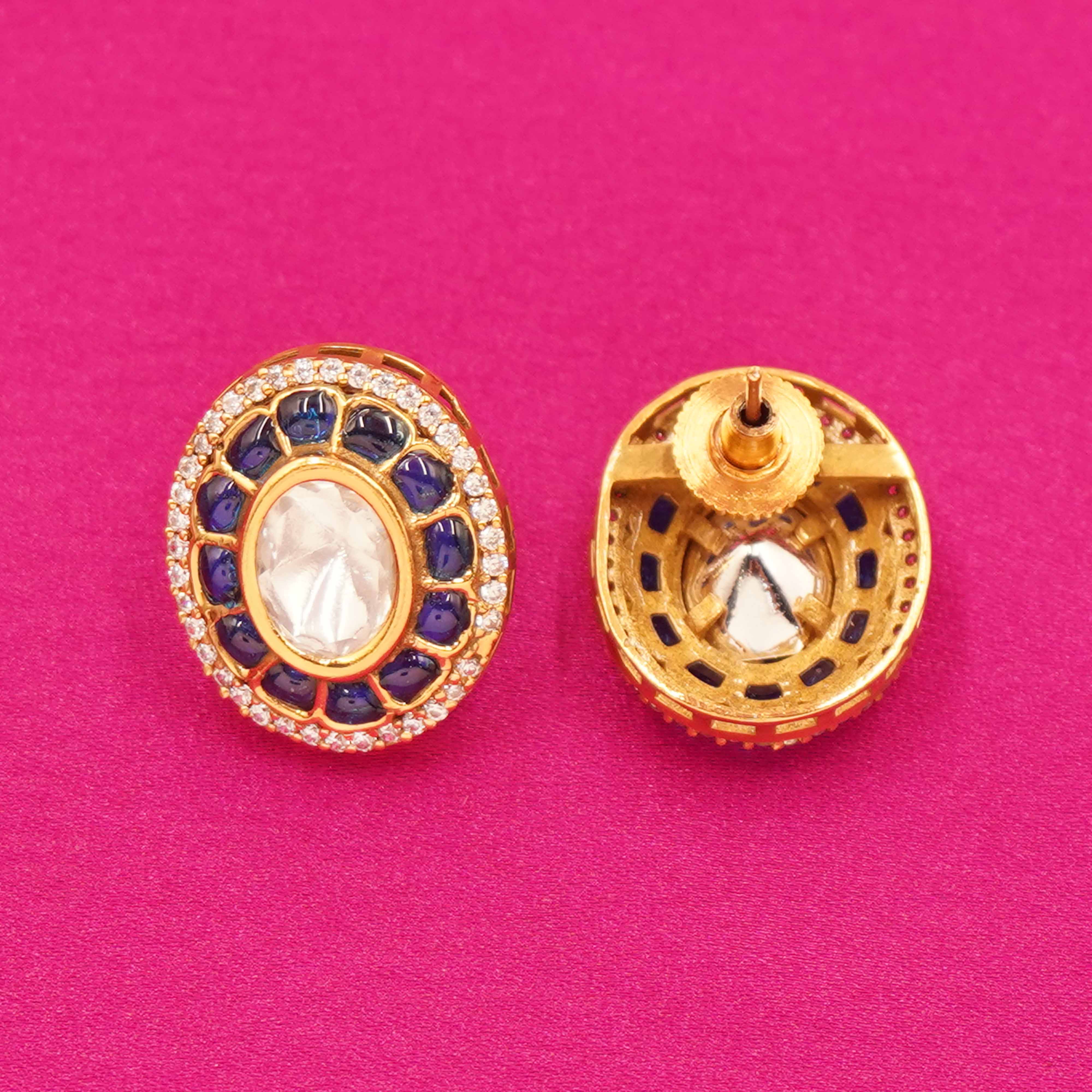 DESCRIPTION - Overall, the earrings have a royal, vintage-inspired appeal—perfect for weddings, festive wear, or pairing with traditional outfits like sarees, lehengas, or anarkalis. Their compact stud style also makes them suitable for semi-formal occasions while still looking luxurious.