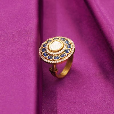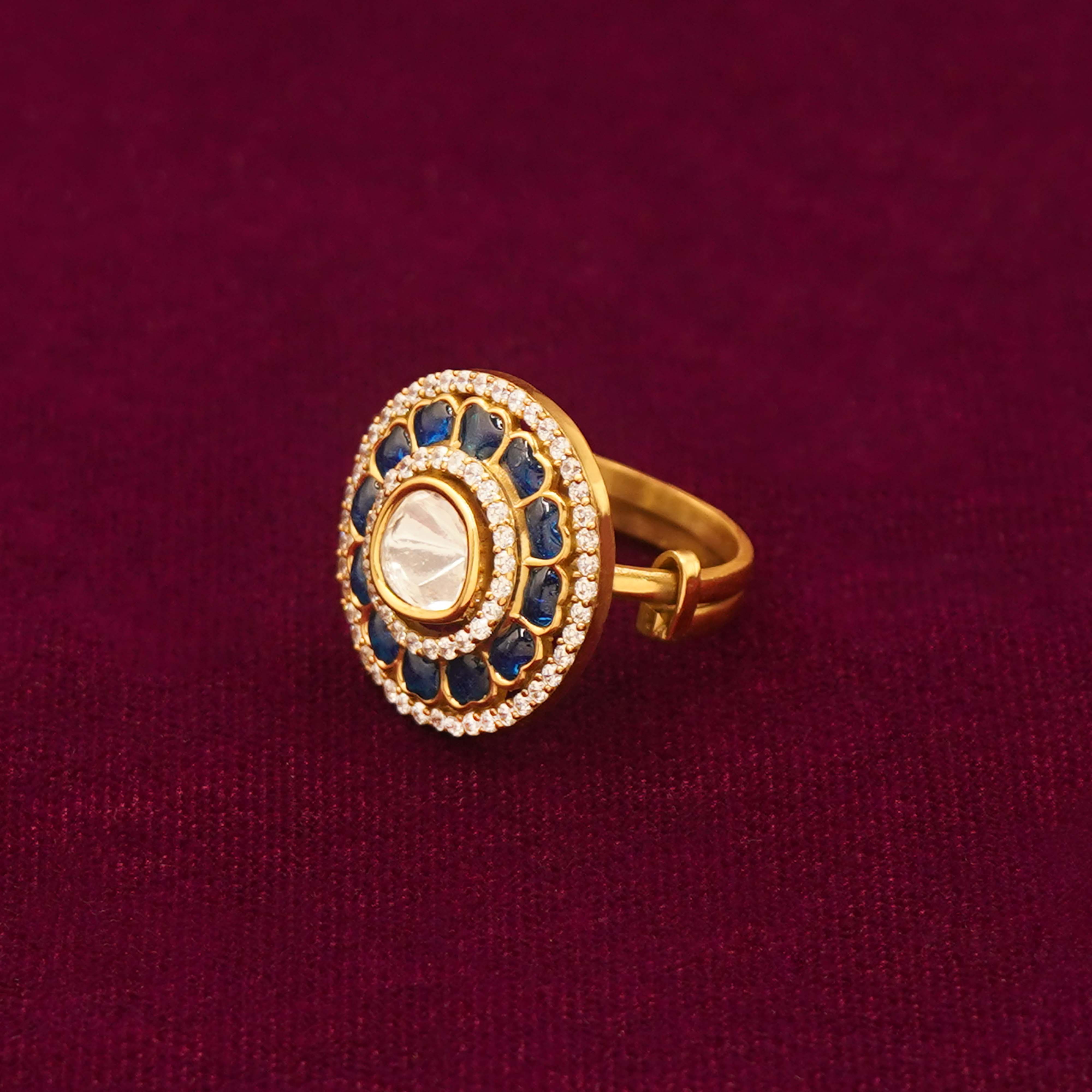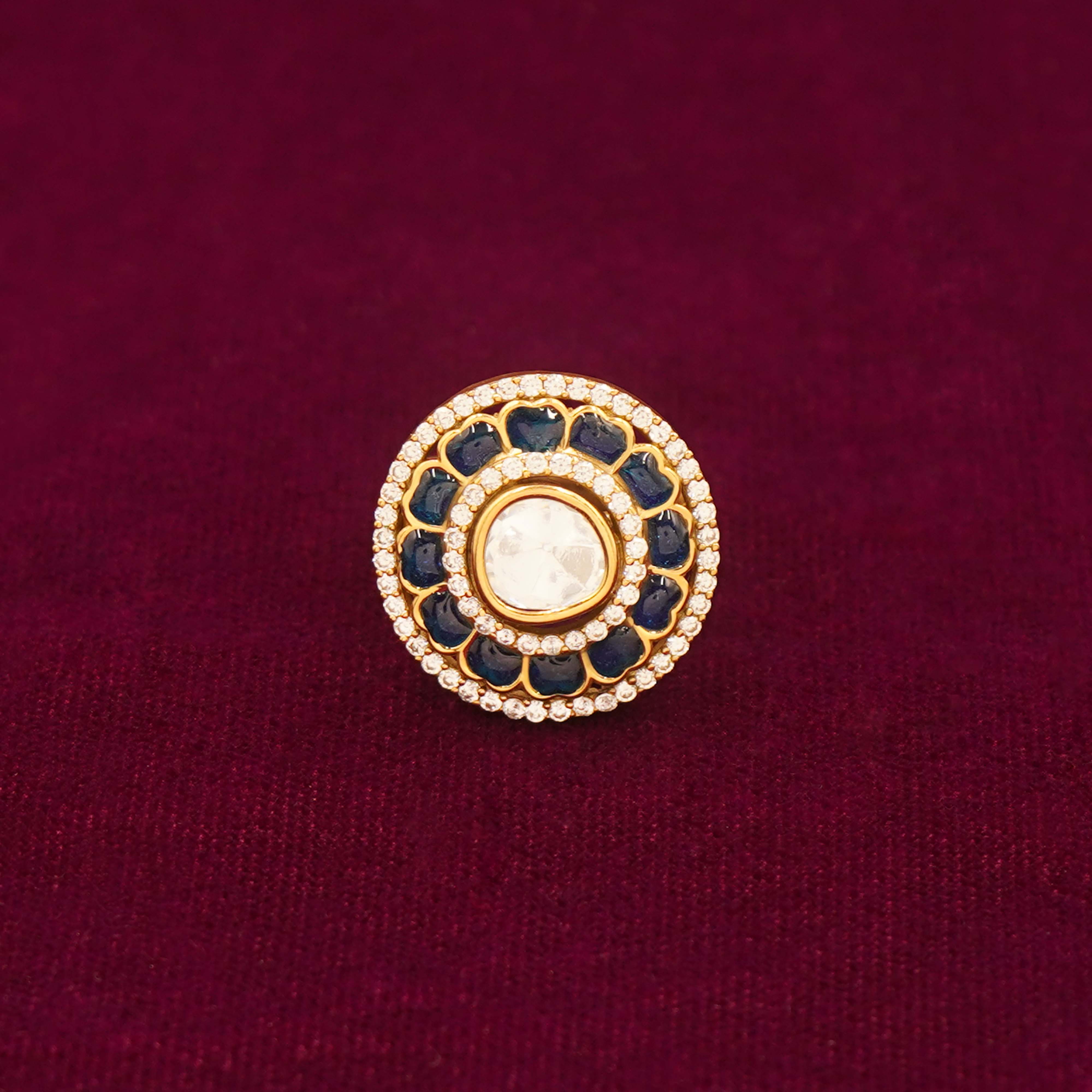 Jaipuri Noor Neel Phool Ring – Navy Petal Elegance in Kundan Radiance