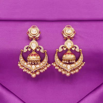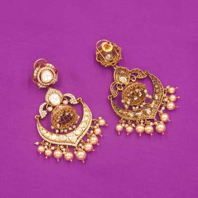 DESCRIPTION - Crafted in a premium gold-tone frame, these earrings offer a regal look perfect for weddings, festive celebrations, bridal outfits, or any special occasion. Lightweight yet striking, they add timeless charm and sophistication to any ethnic ensemble.
