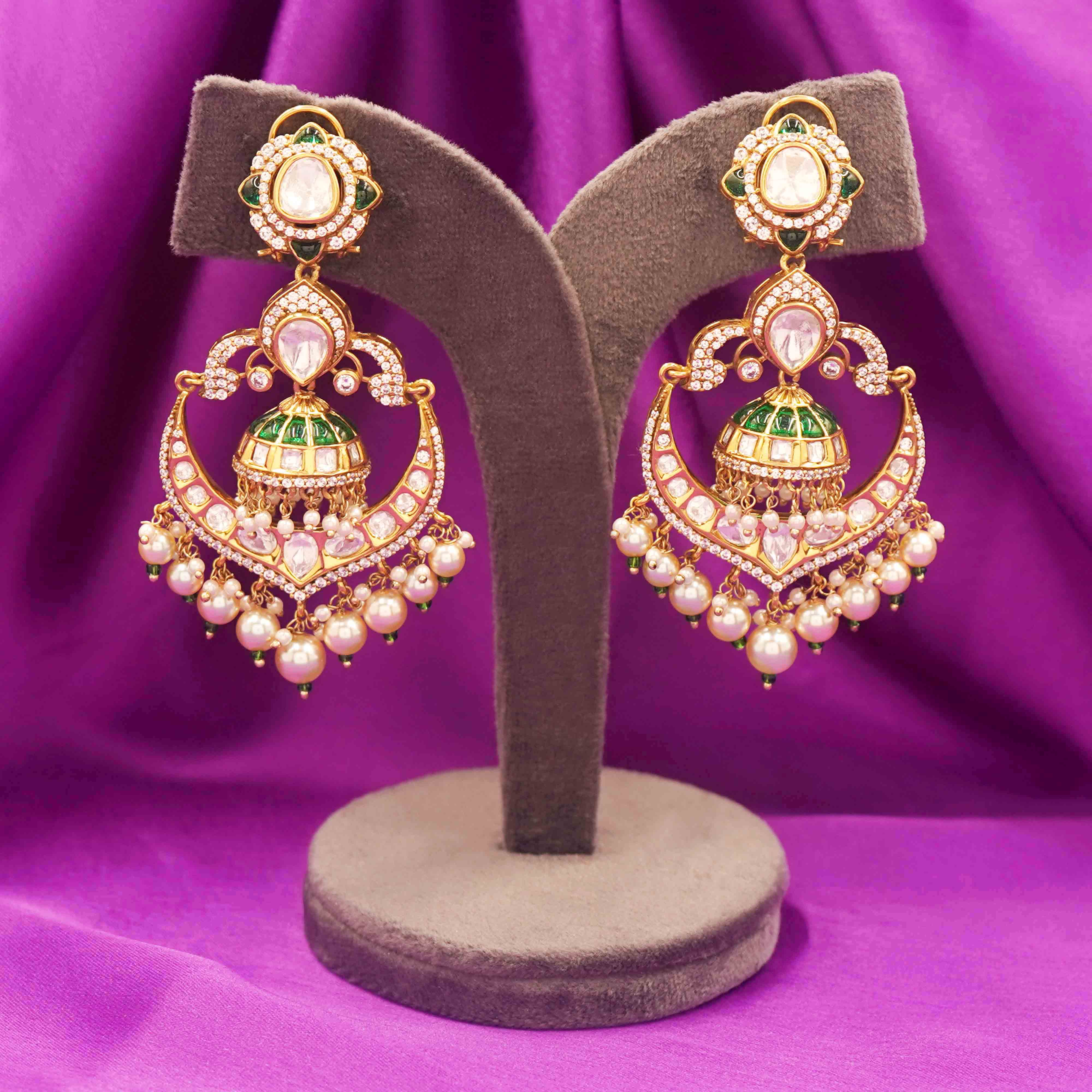 Panna Chandrika Kundan Chandbalis – Jaipur Ki Shahi Harit Jhilmil