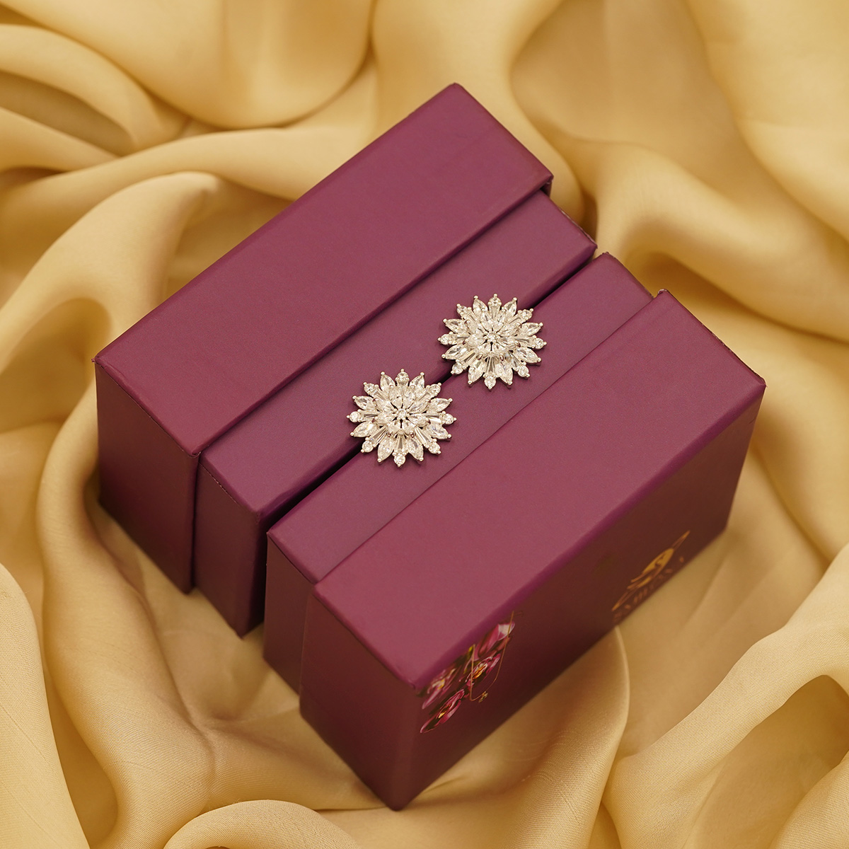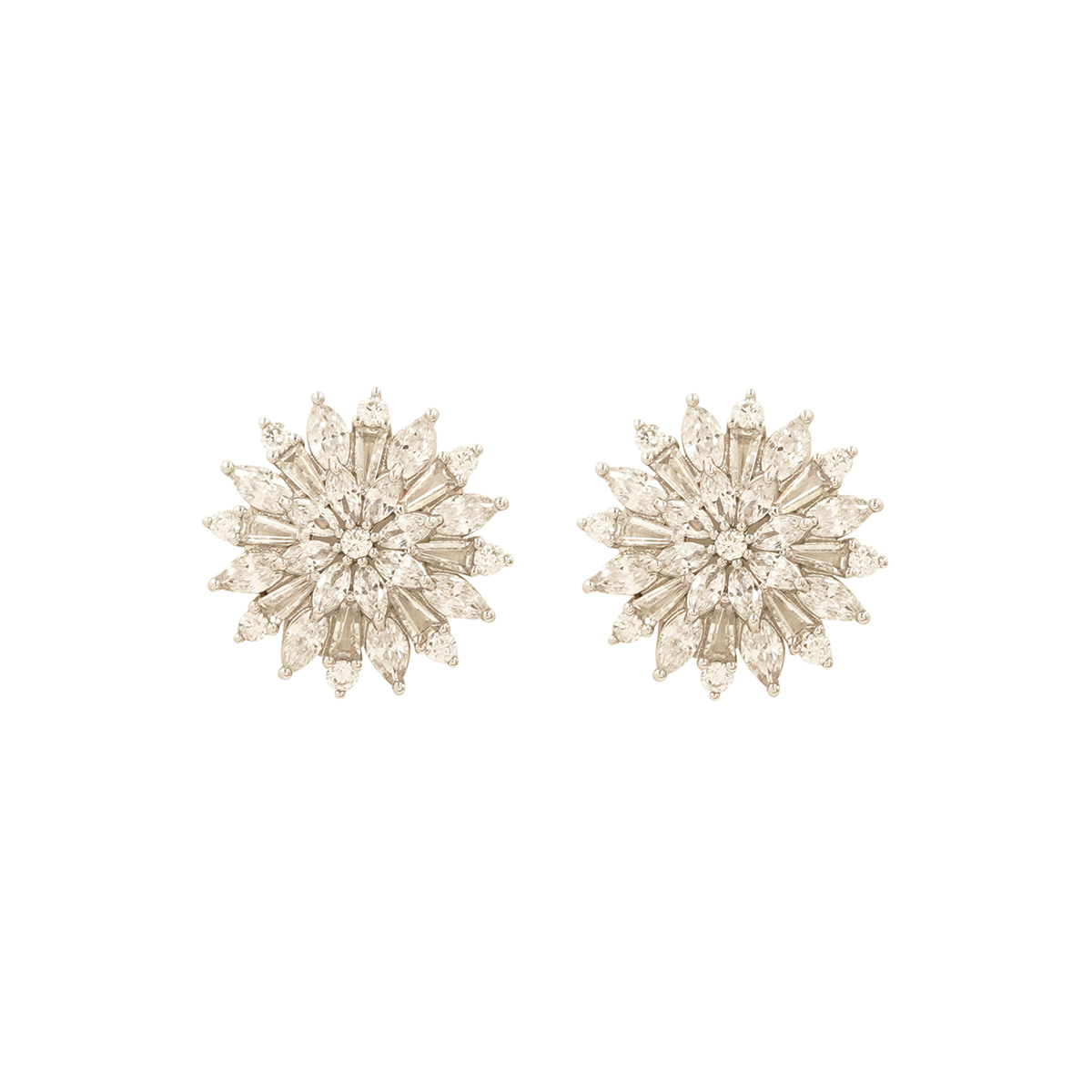 DESCRIPTION - These stunning starburst earrings capture the brilliance of a blooming flower in every facet. Designed to sparkle with elegance, they bring a bold yet refined charm — perfect for festive occasions or statement evening wear.