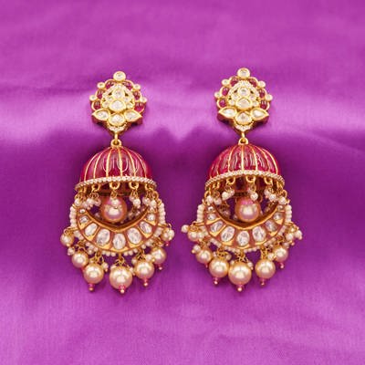 Rang-e-Ruby: Jaipuri Kundan Ensemble Adorned with Dome Drops