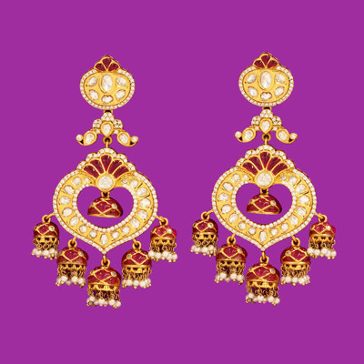 Regal Red Kundan Heart Jhumka Earrings