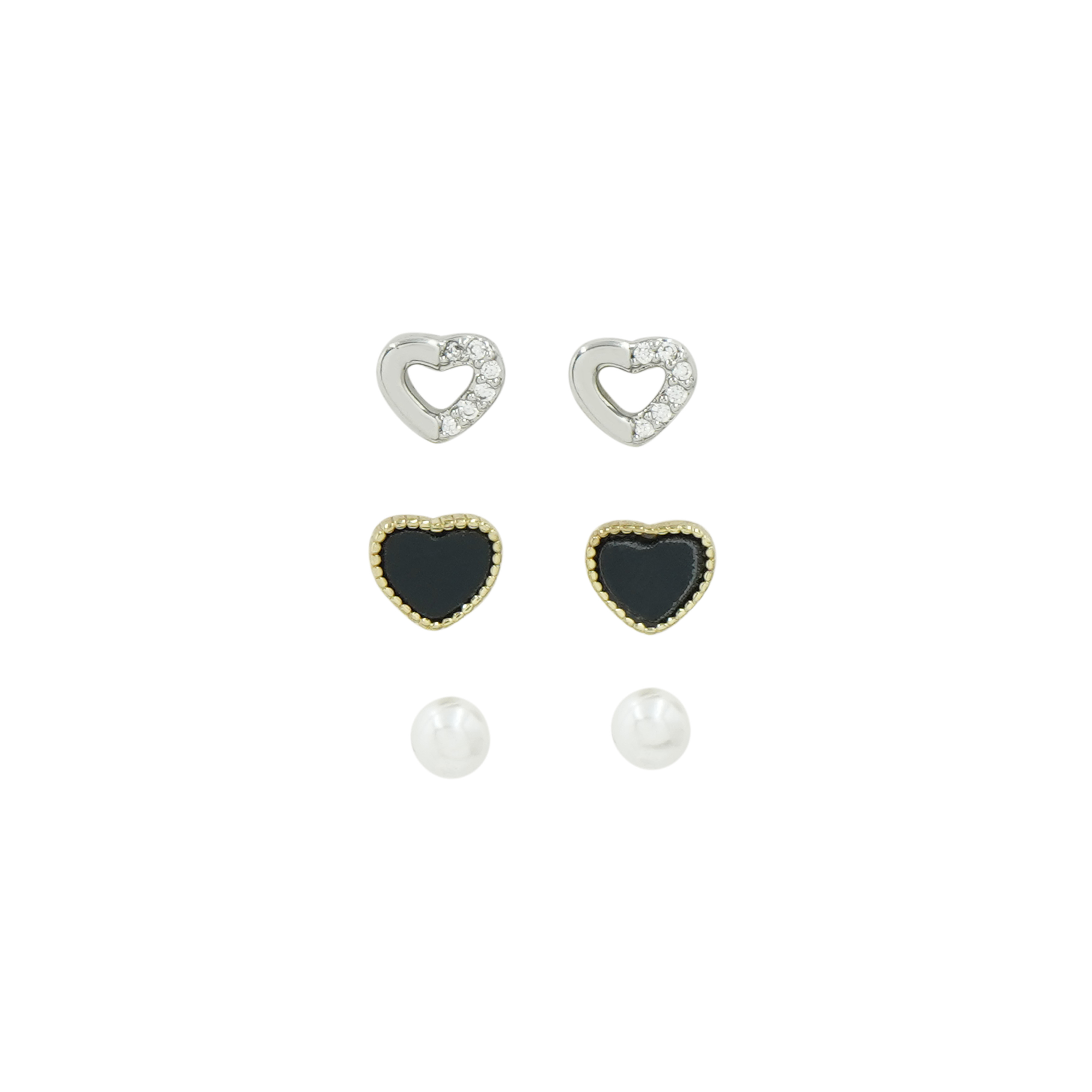 DESCRIPTION - This elegant earring set includes 3 pairs of cubic zirconia stud earrings in a silver-tone finish. Designed in a versatile trio style, each pair adds a sparkling touch that is perfect for everyday wear, office looks, parties, or special occasions. Lightweight, comfortable, and timeless, this set makes a great addition to your jewelry collection or a thoughtful gift.