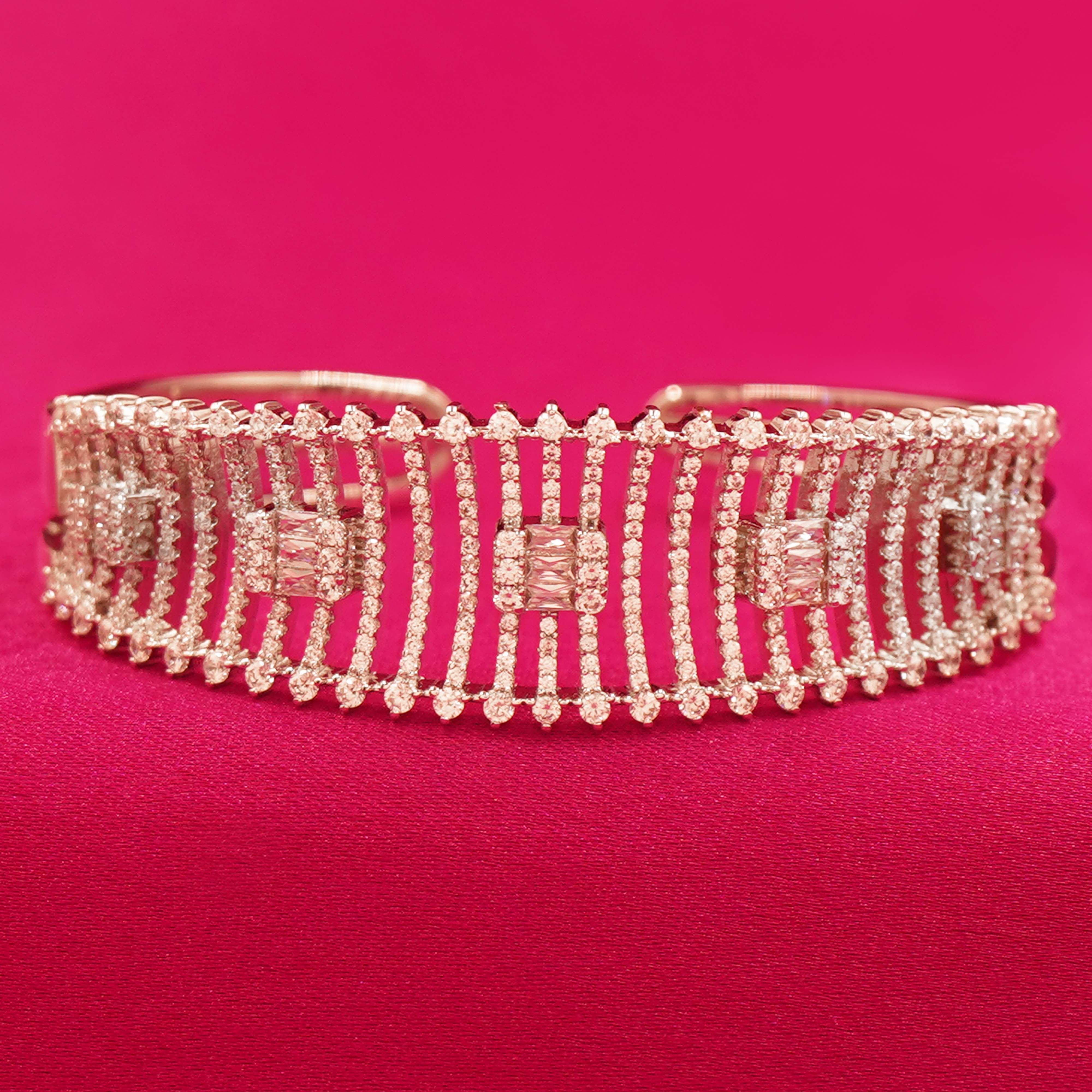 Statement Wide Zircon Bangle with Geometric and Lattice Detailing