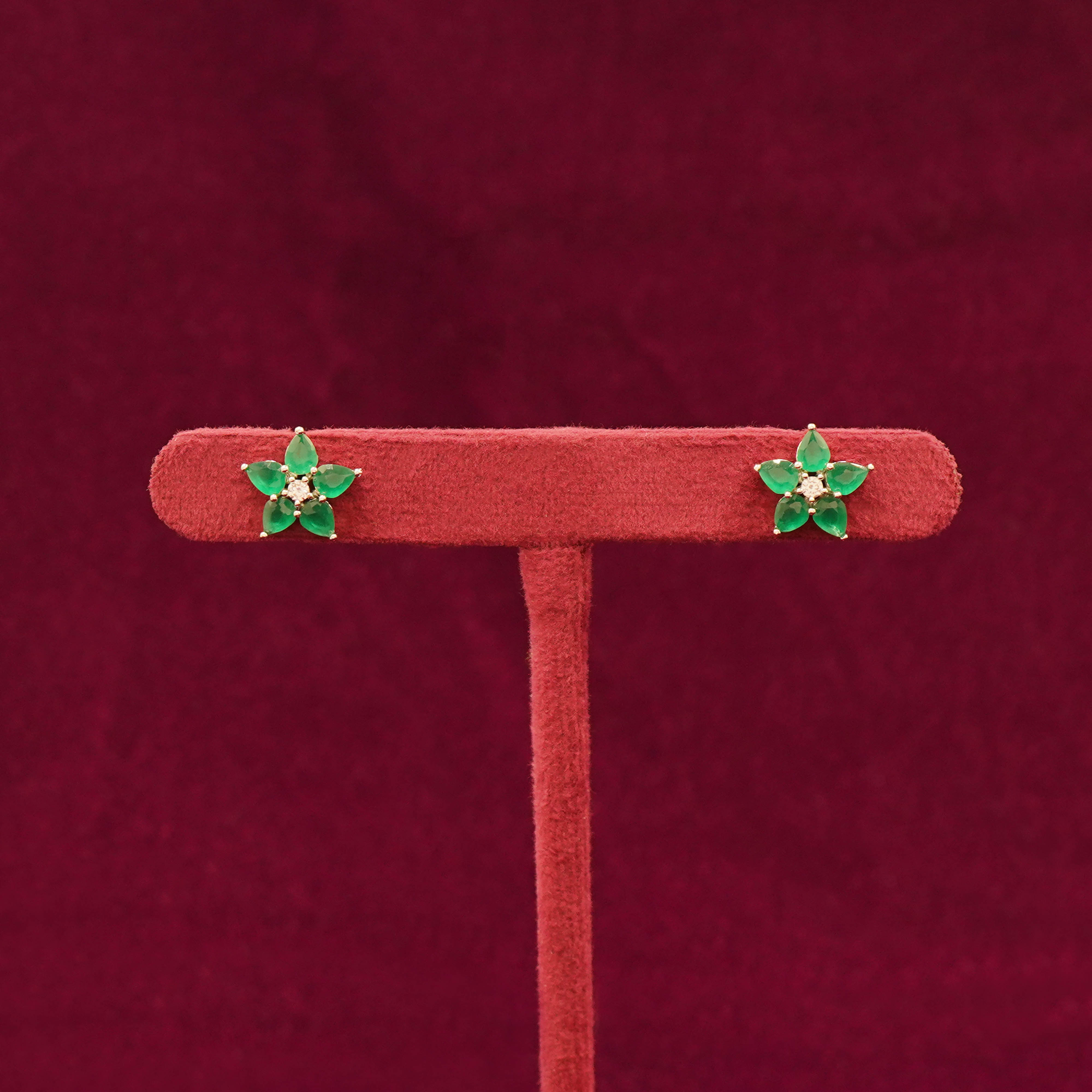 Stud / Tops / Earring / Floral Green Stone Stud Earrings