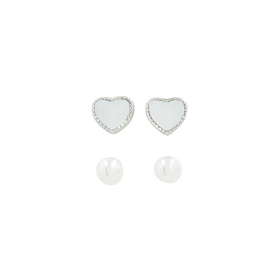 STUD/TOPS/EARRING, Elegant Silver-tone and Pearl Earring Set