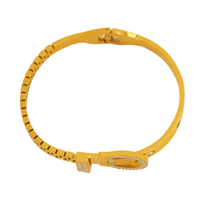 DESCRIPTION - This chic bracelet features a unique buckle-style centerpiece, beautifully highlighted with sparkling crystal stones. Lightweight, elegant, and eye-catching, this bracelet is perfect for daily wear, office looks, parties, and gifting. A trendy accessory that adds a bold and stylish touch to any outfit.