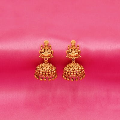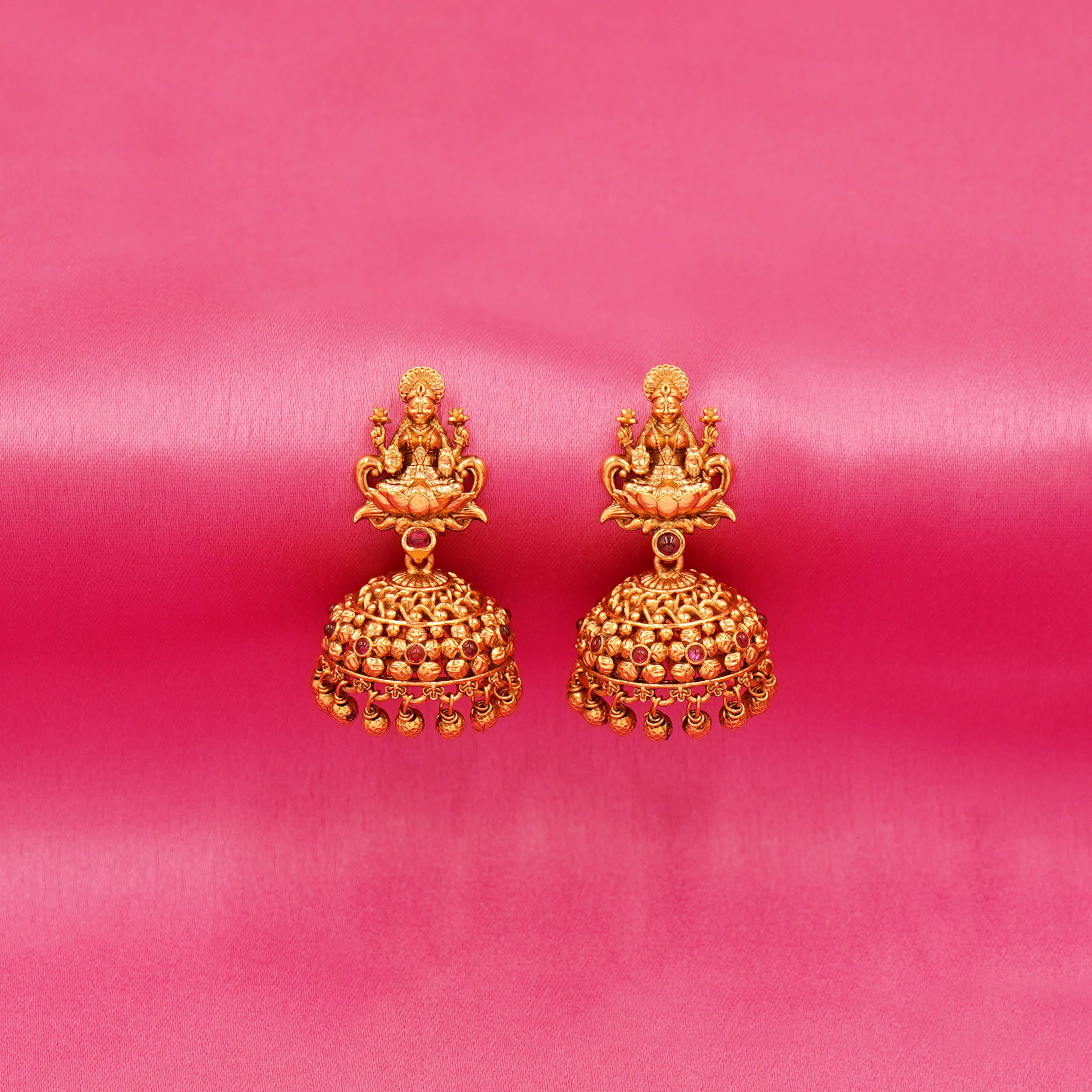 Swarna Leela: South Indian Temple-Inspired Long Necklace and Jhumka Set in Gold Tone Finish