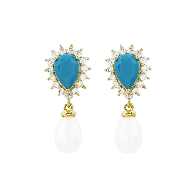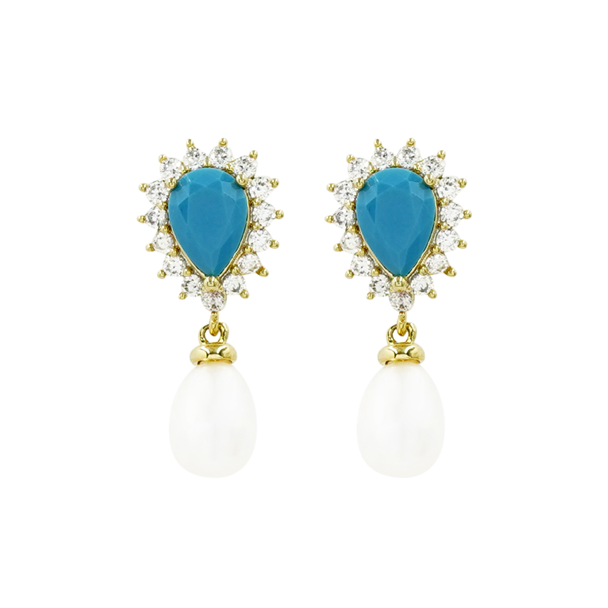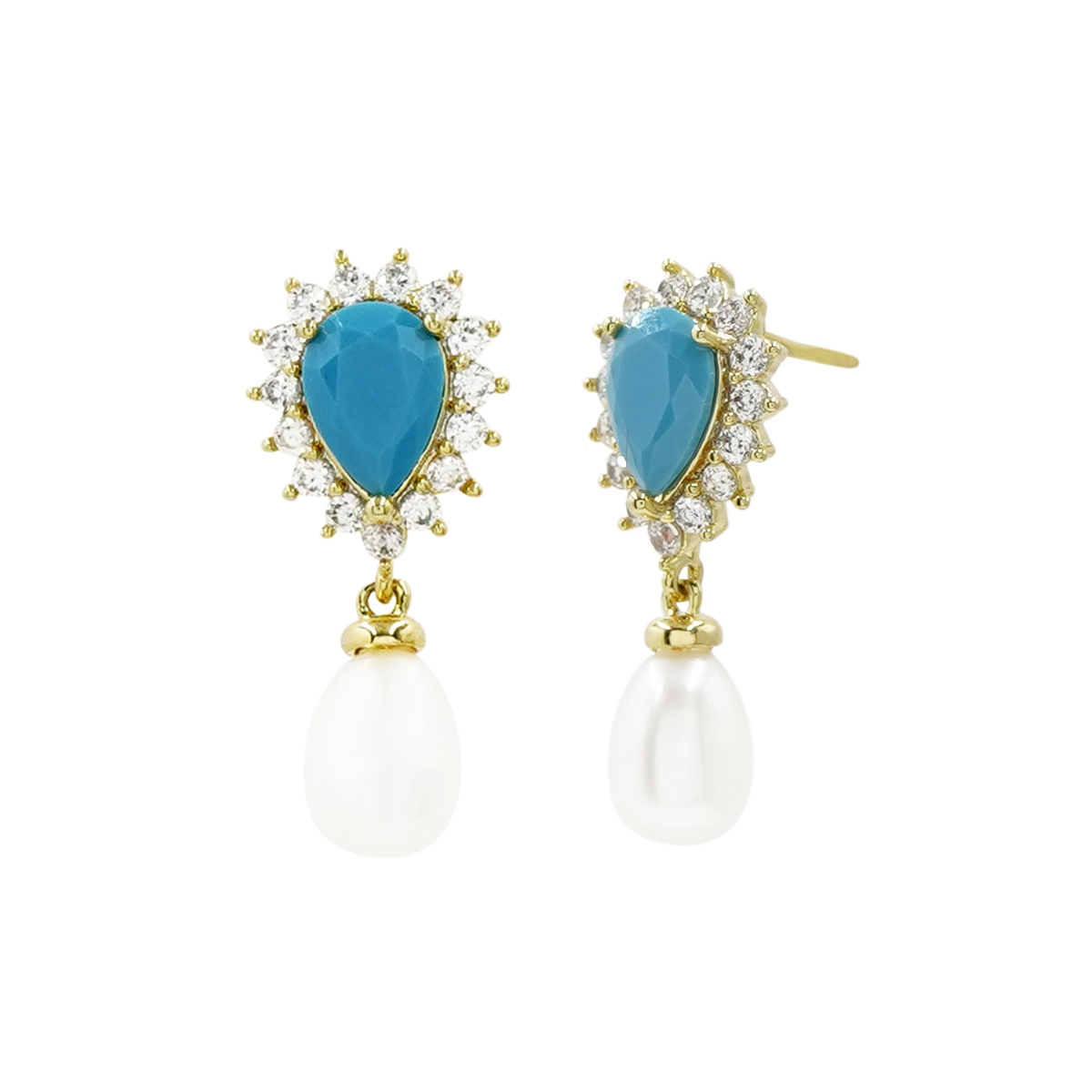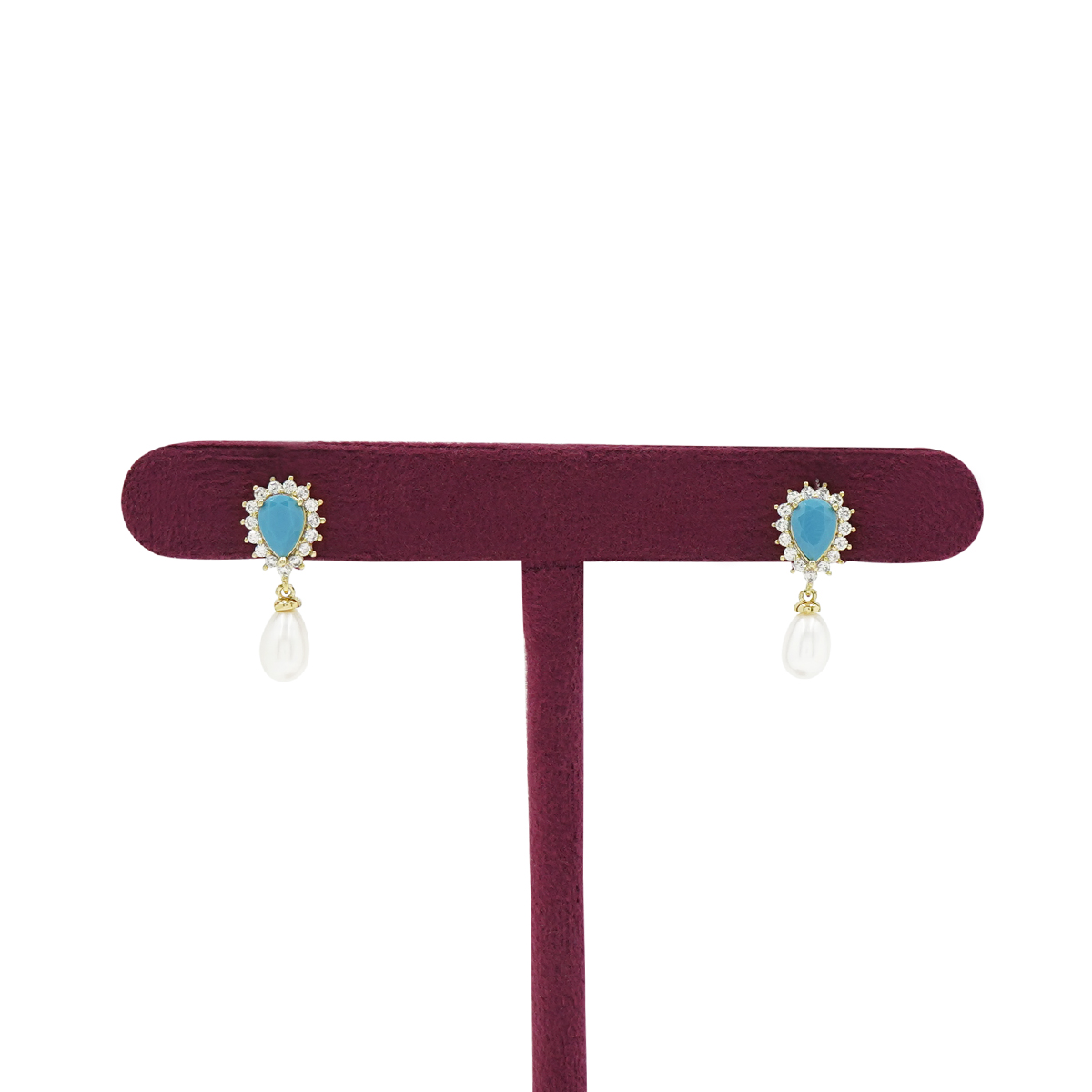 TEARDROP EARRING/DROP EARRING/EARRING, Elegant Teardrop Blue Stone and Pearl Drop Earrings