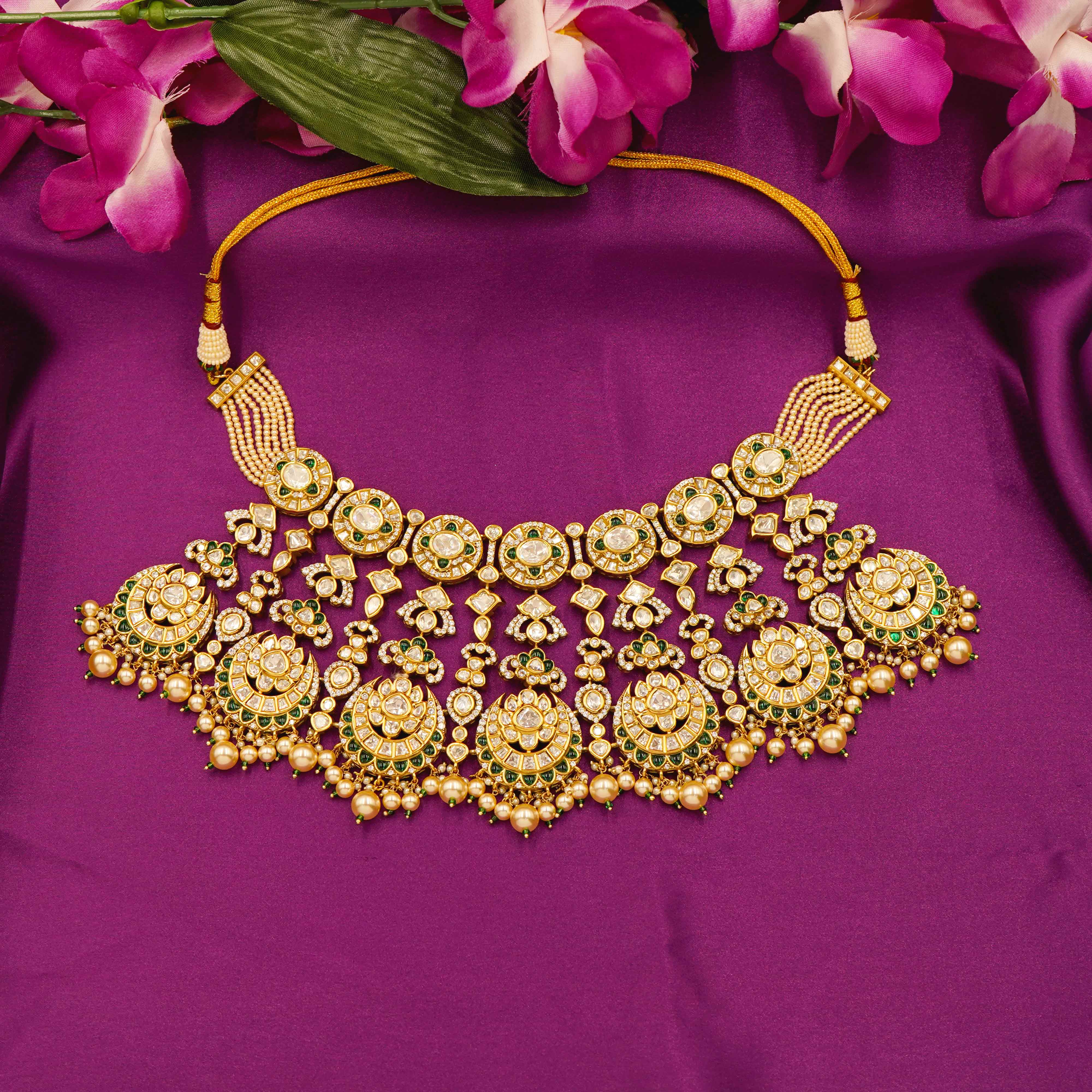 DESCRIPTION - KUNDAN NECKLACE SET/ necklace set/ Regal Kundan Necklace Set with Maang Tikka Elevate your bridal elegance with this magnificent Kundan bridal necklace set, crafted to perfection. Set against a lustrous pink backdrop, this exquisite piece features a grand choker-style necklace adorned with intricate Kundan work