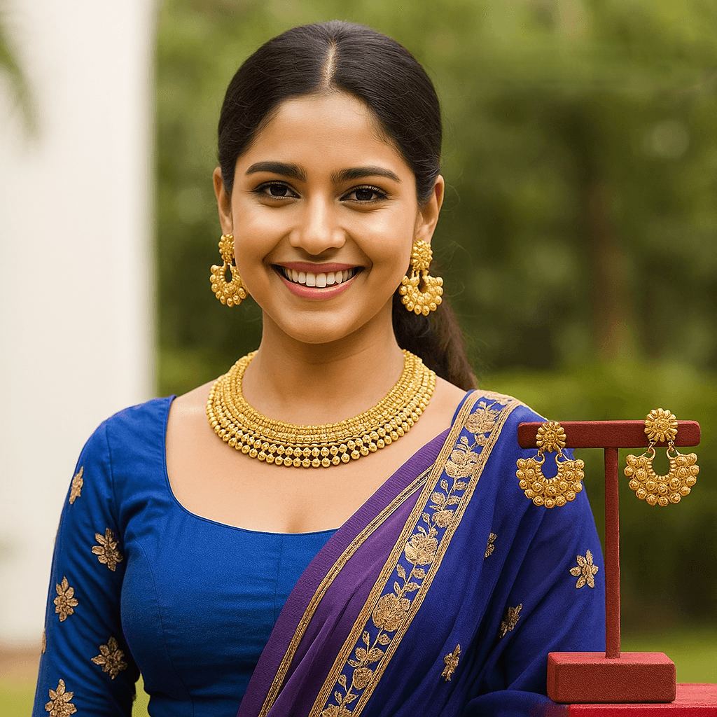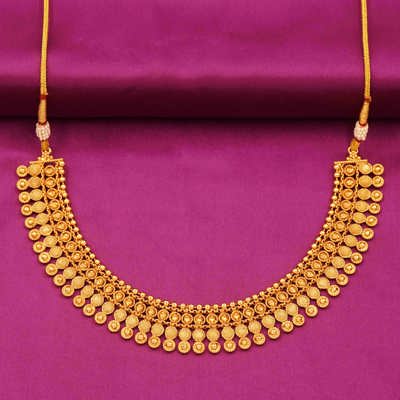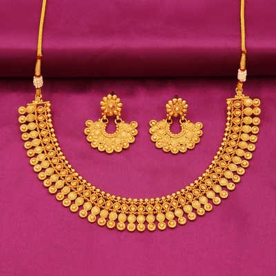 Traditional Gold-Toned Choker Necklace Set Temple & Bridal Style with Matching Earrings