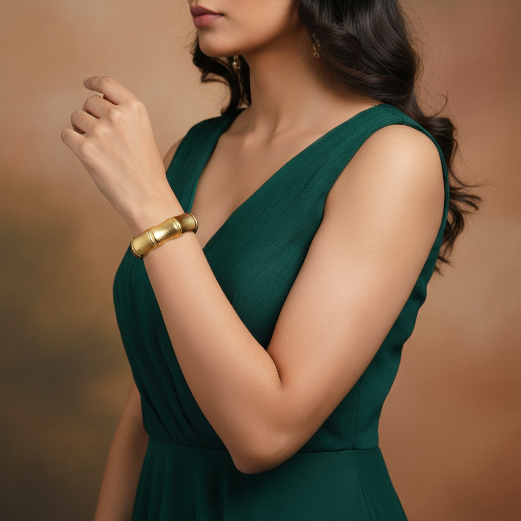 DESCRIPTION - TRENDY BRACELELET/BRAELELT, A GOLD-TONE BANGLE BRACELET WITH A HAMMERED OR TEXTURED SURFACE AND A HINGED CLASP MECHANISM FOR OPENING AND SECURING IT. A GOLD-TONE BANGLE BRACELET WITH A HAMMERED OR TEXTURED SURFACE AND A HINGED CLASP MECHANISM FOR OPENING AND SECURING IT. THE DESIGN IS ELEGANT AND REFLECTIVE, OFTEN ASSOCIATED WITH TRADITIONAL OR CLASSIC JEWELRY STYLES.
