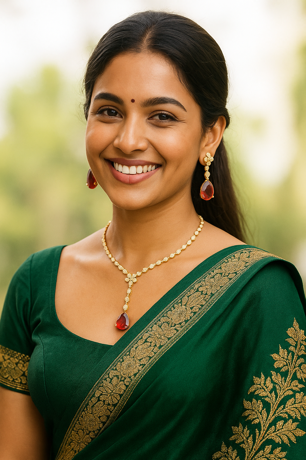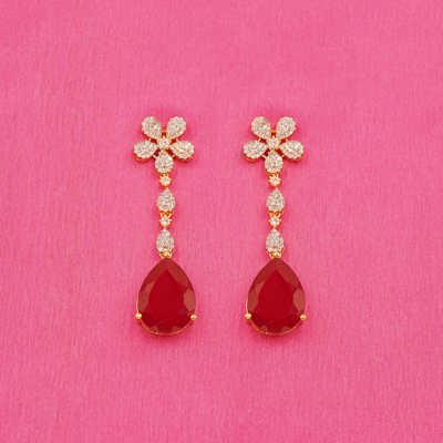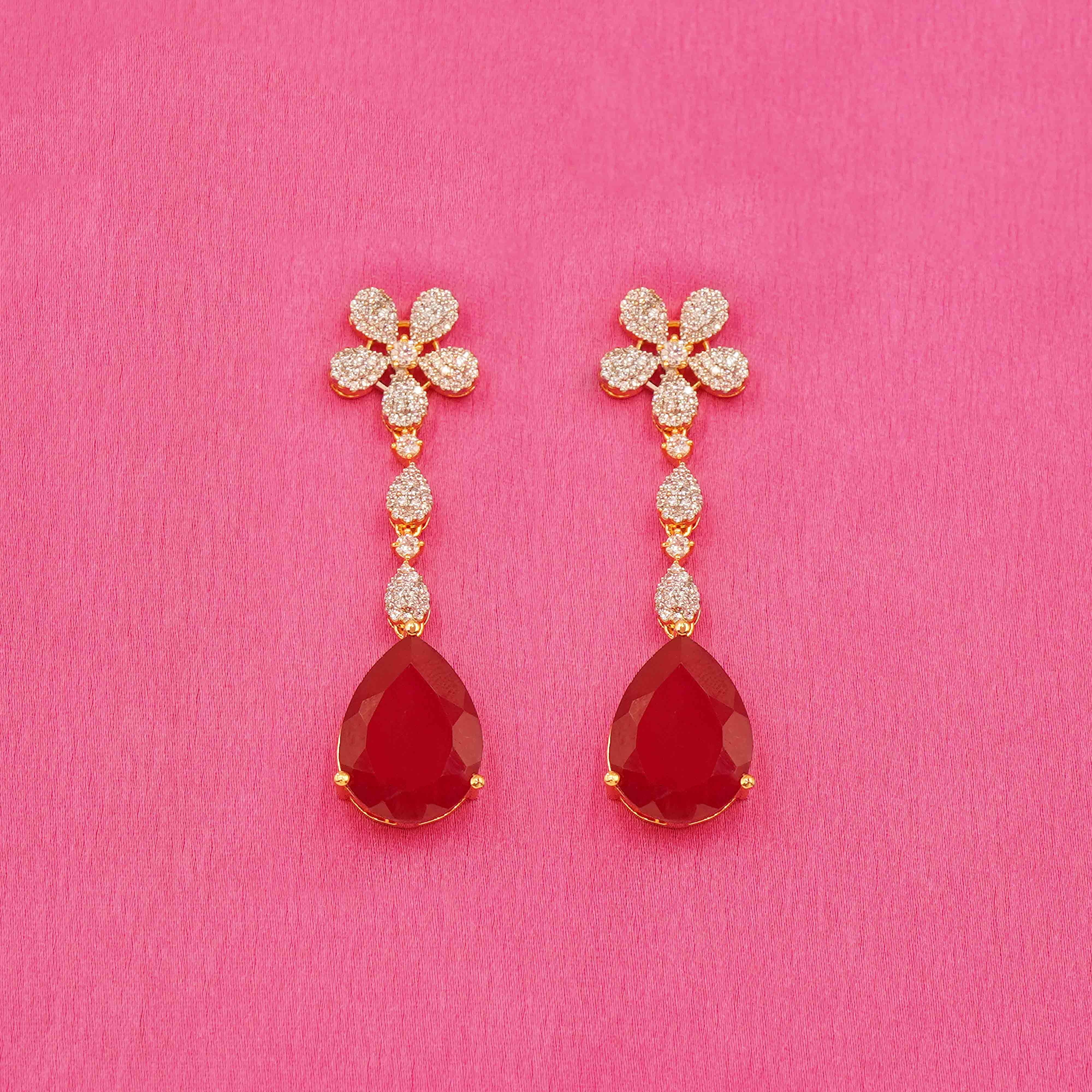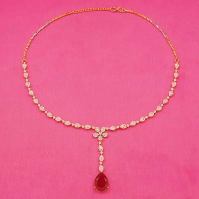 DESCRIPTION - Turn heads with the captivating charm of the Scarlet Drop Elegant Necklace Set. Adorned with shimmering stone detailing and a striking red teardrop pendant, this Y-shaped necklace adds graceful drama to your ensemble. Paired with matching earrings featuring delicate floral accents and bold scarlet drops, this set is perfect for festive occasions, weddings, or evening events. Lightweight and graceful, it delivers a refined yet eye-catching look that never goes out of style.