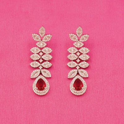 DESCRIPTION - This exquisite jewelry set showcases a harmonious blend of sparkling brilliance and bold scarlet allure. this design exudes grace and grandeur—perfect for elevating your look at any special occasion.